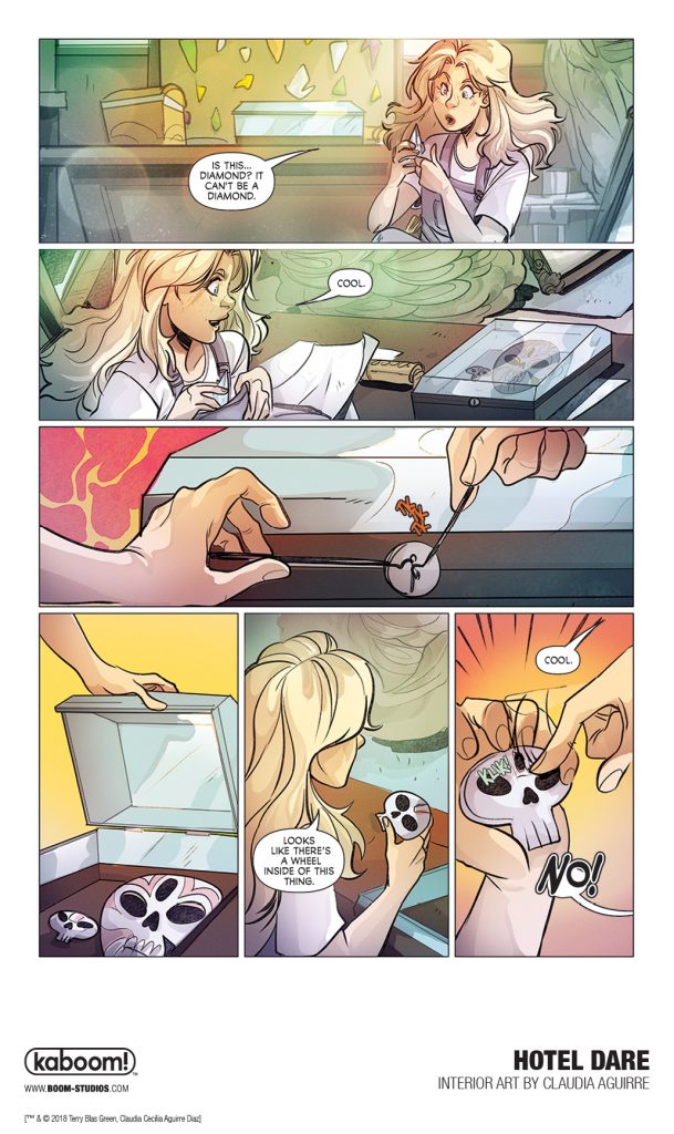 BOOM! Studios today unveiled a first look at HOTEL DARE, an all-new original graphic novel written by Terry Blas (Dead Weight) and illustrated by rising talent Claudia Aguirre (Kim & Kim) arriving in stores April 2019.