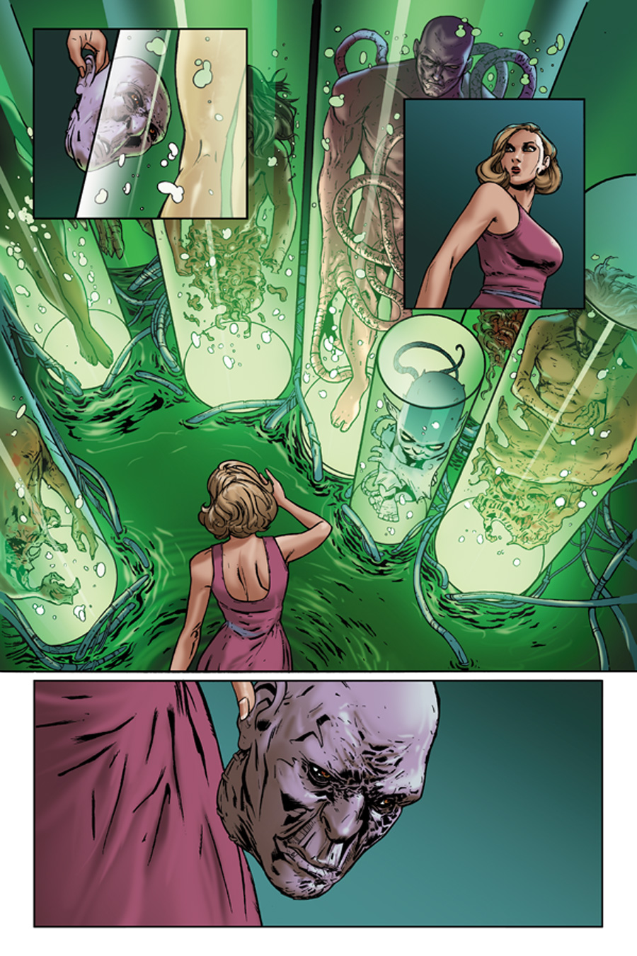 Dynamite Entertainment is proud to announce the October launch of Dean Koontz’s Frankenstein: Storm Surge, an all-new six-issue miniseries. From the celebrated imagination of the bestselling novelist comes a powerful reworking of one the most classic stories of all time, co-written by veteran comic book author Chuck Dixon (Batman, The Punisher) and illustrated by Andres Ponce (Doctor Who, Transformers Prime).Frankenstein: Storm Surge #1 continues the fan-favorite reimagining of “The Modern Prometheus” seen in Koontz’s previous Dynamite series, focusing on cast members Victor and Erika. While healing from a beating she suffered at the hands of Victor Helios – once Dr. Frankenstein – and her own maker, Erika Five decides to leave the comfort of her glassed-in porch and bottle of cognac to go exploring into Victor’s secret home lab, which she believes is an antechamber to something more sinister. With the help of the bodiless head Karloff and his disembodied hand, Erika finds a secret lab and within sees experiments revealing Victor’s attempts to do more than create a race of super-immortals… and a mirror-like portal to another universe, one of infinite realities Victor is trying to bridge for his own terrifying reasons!Regarding the new series, Dean Koontz says, “With Frankenstein: Storm Surge, Dynamite has wonderfully revitalized this series. Uber cool!”Dean Koontz is a New York Times bestselling author whose books are published in 38 languages and have sold over 450 million copies to date. Fourteen of his novels have risen to the top of the NYT hardcover bestseller list (One Door Away From Heaven, From the Corner of His Eye, Midnight, Cold Fire, The Bad Place, Hideaway, Dragon Tears, Intensity, Sole Survivor, The Husband, Odd Hours, Relentless,What the Night Knows, and 77 Shadow Street), making him one of only a dozen writers ever to have achieved that milestone. Sixteen of his books have risen to the number one position in paperback. His books have also been major bestsellers in countries as diverse as Japan and Sweden. Rolling Stone has hailed him as “America’s most popular suspense novelist.”
