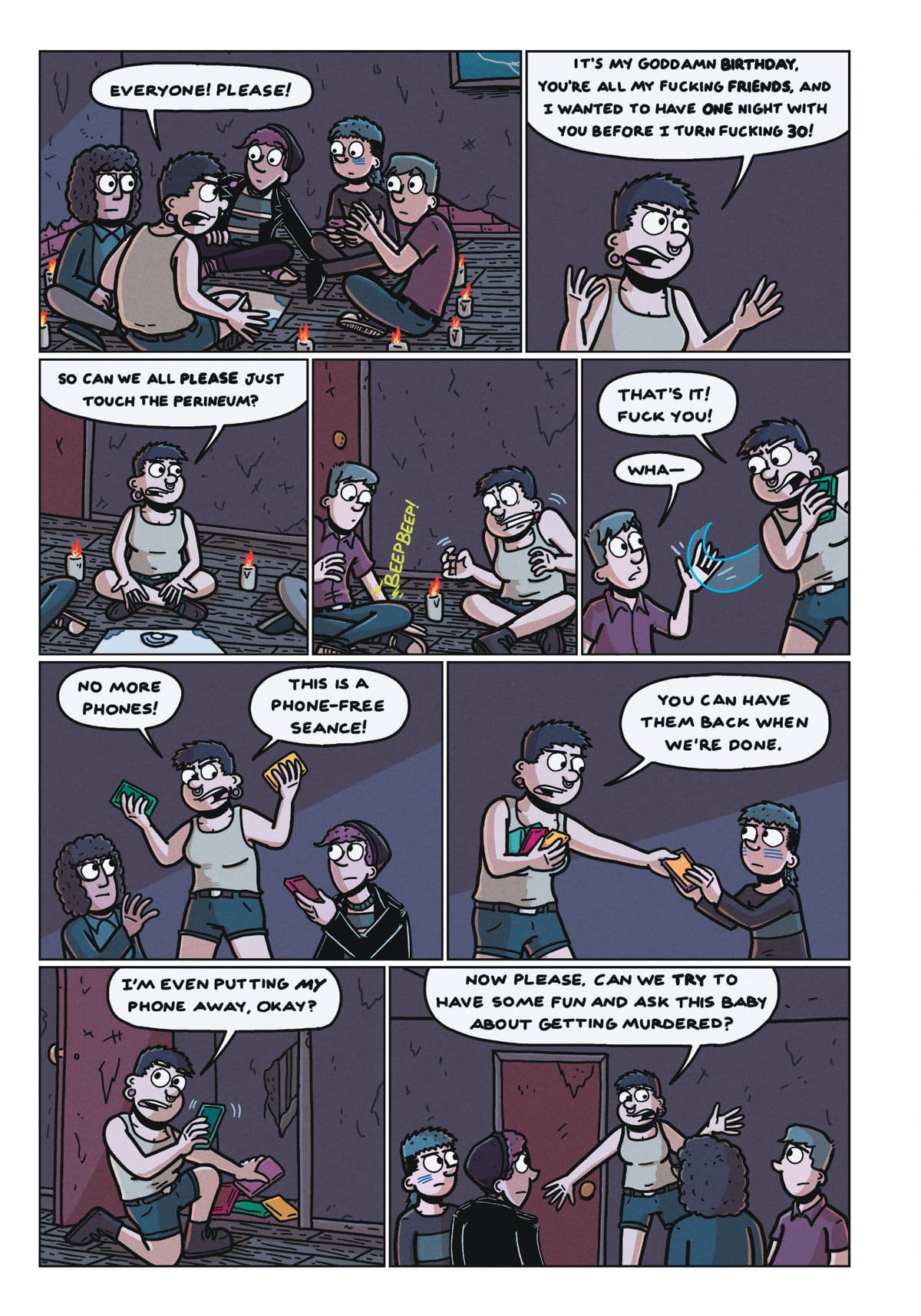 On the Friday before Kate’s 30th birthday, she convinces her friends to go back to her hometown to celebrate. The plan: break into an abandoned house and hold a séance, just like she did in high school. As the friends join hands over the ouija board, an unsettlingly real scream splits the air. What started as a fun way to relive their punk adolescence before accepting the weight of adulthood turns into a night of fleeing bloodthirsty cultists. Can they find a way to get out of the suburbs alive?
