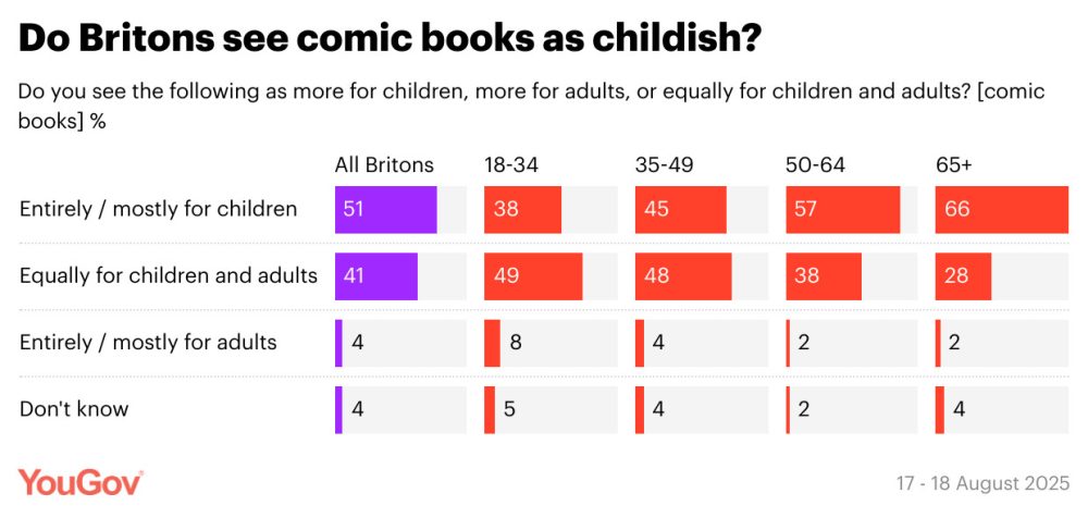 Roughly half of British adults believe comics are the domain of children, according to a survey conducted by UK-based international analytics firm YouGov.