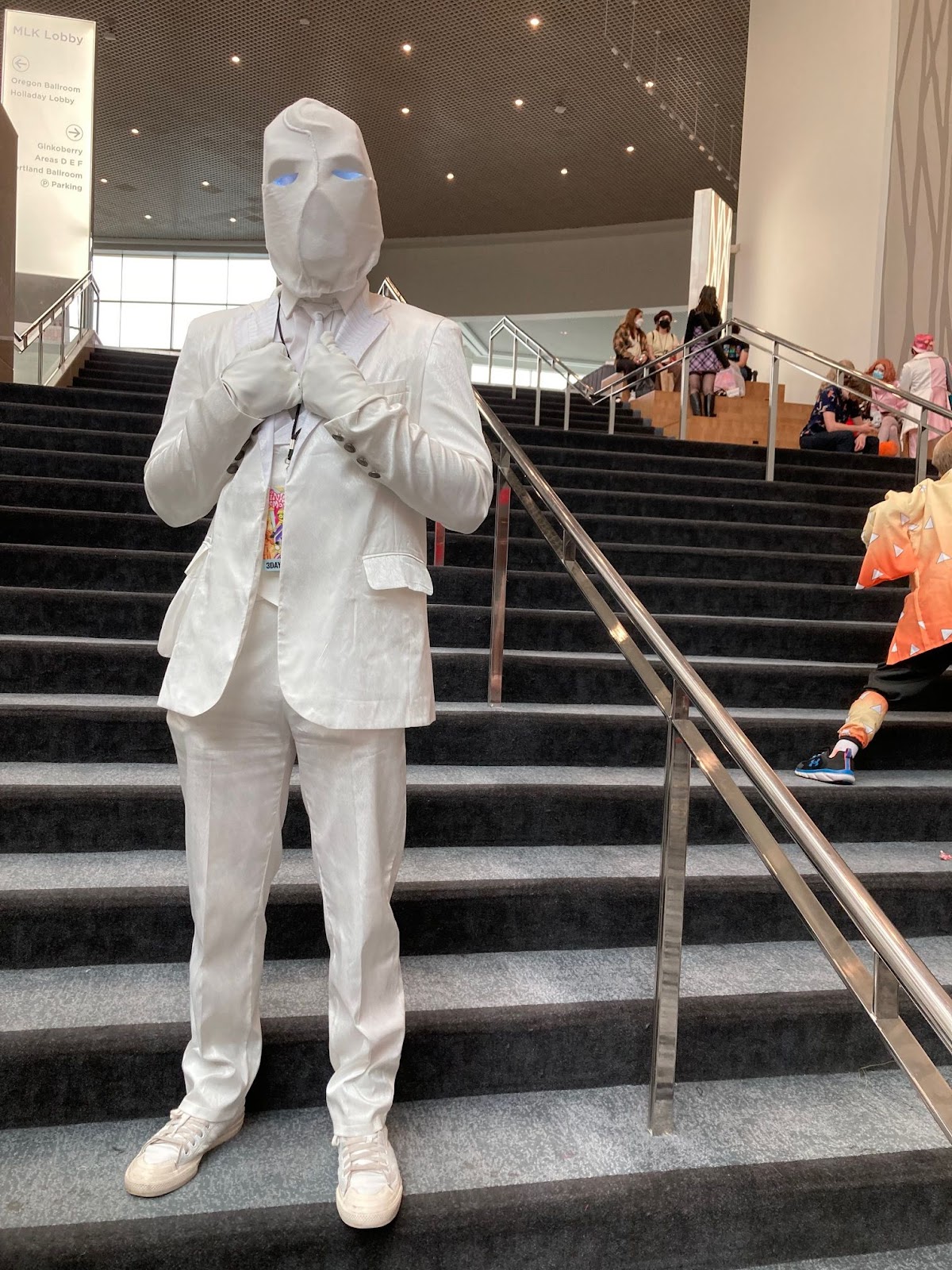 We all know comic cons are for all lovers of fiction and storytelling. But no discussion on any comic con would ever be complete without a mention of cosplayers. Since Portland isn’t the largest cosplay convention, you wouldn’t see the same quality of costumes one might see in San Diego, but there is a small and determined cosplay community who make intricate and somewhat terrifying designs. If I was to go over statistics of cosplayers, it would be around 42 percent anime characters, primarily catgirls and maids, but also featuring multiple “Hatsune Mikus”. Around 8 to 20 percent Marvel Characters and 10 percent internet personalities or characters from short story youtube animations or series. And maybe around 8 percent video game/game characters and personality, think anything from Halo to Warhammer 40k. Then there were the 7 percent horror characters. And the 10 percent Star Wars and Star Trek combined costume statistics. Multiple Mandalorians, Obi-wans, Darth Vaders and Picards. I would say the ratio of cosplay to non cosplayers would be around 50%, the average number for a comic con. The majority of cosplayers were youths, primarily teenagers. There were also multiple in-convention pop ups for costumes, head pieces, weapons and maid outfits, all spread around the floor.