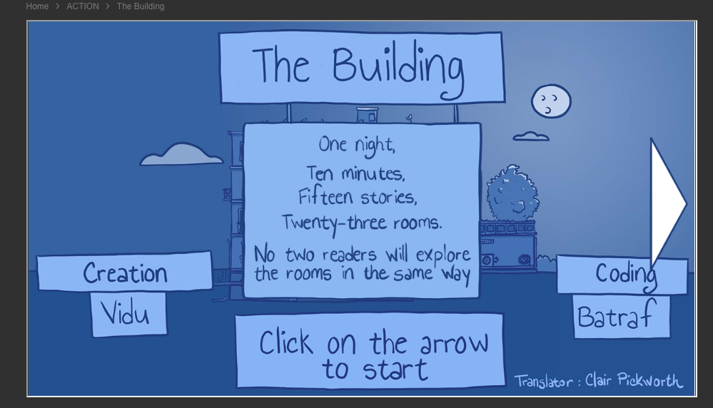 Immeuble (The Building) by Vidu is another Fauve nominee in the “digital horizons” category. And it has an English language version so hop right to it.