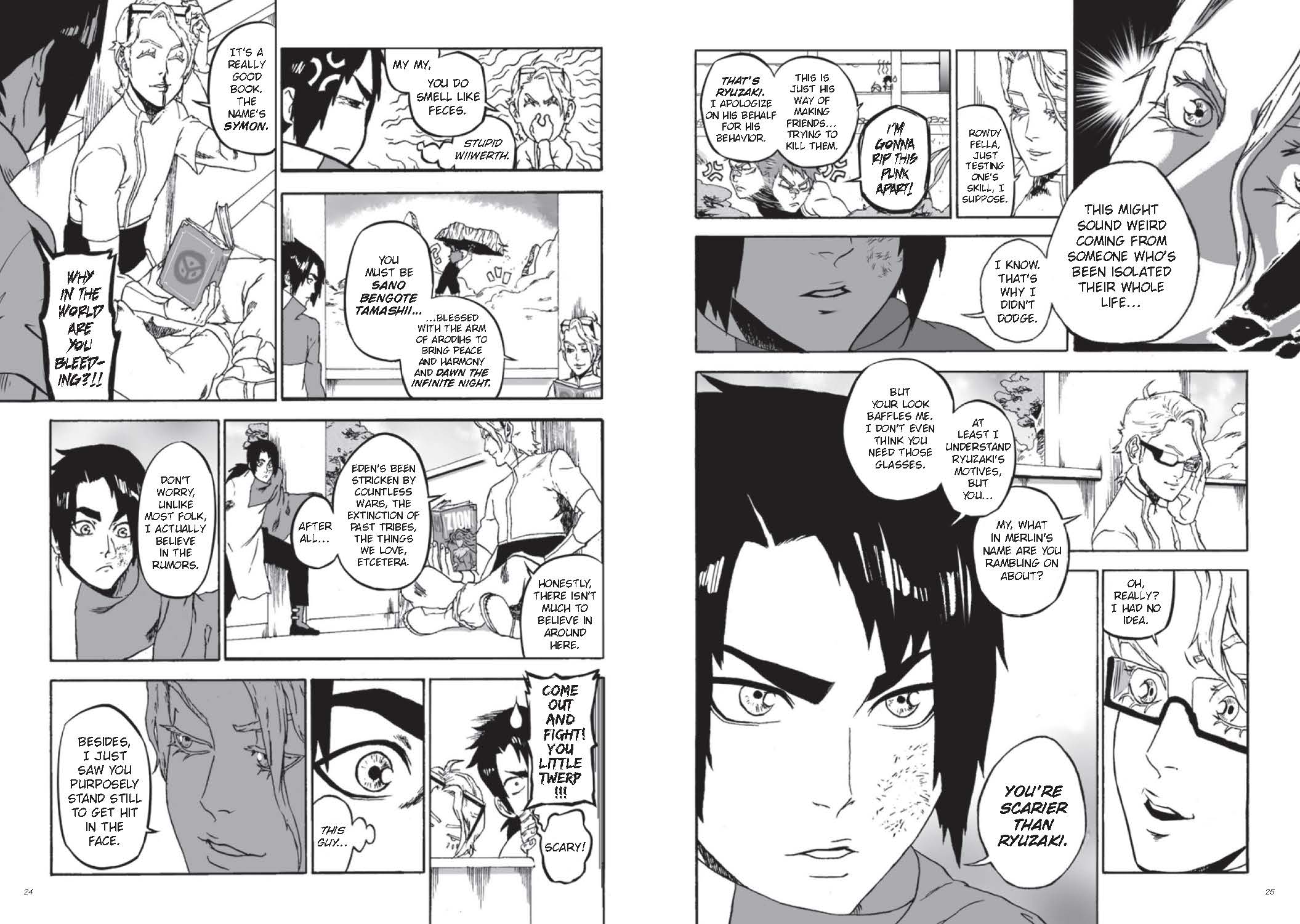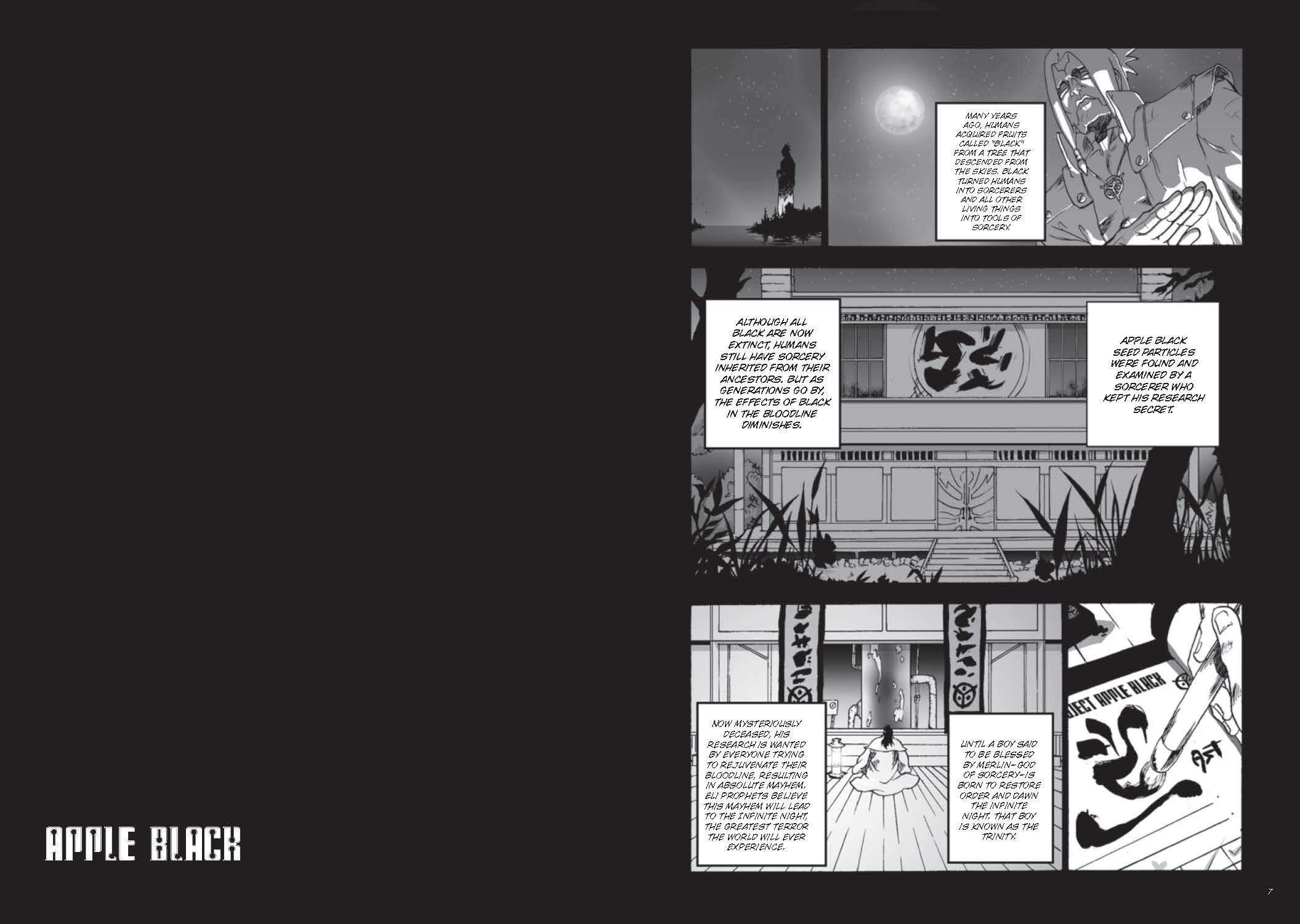 Many years ago, humans acquired fruits called “Black” from a tree that descended from the skies, which turned humans into sorcerers. Although all of Black is now extinct, humans still have sorcery inherited from their ancestors. As generations go by, the effects of Black in the bloodline diminishes and sorcerers use a variety of objects as “wands” to harness their magical power. Blessed by “Merlin,” the god of sorcery, with the Arodihs arm, Sano, a young sorcerer, has the ultimate wand. He is raised and trained in isolation and secrecy to be the world’s savior known as the Trinity. The savior is believed to be the one who dawns the Infinite Night, an eternal night of chaos.