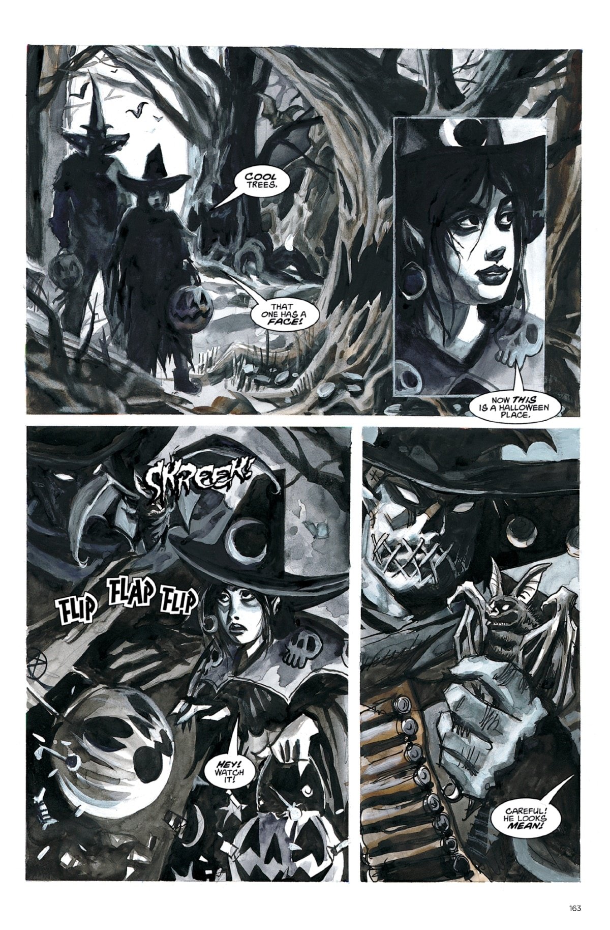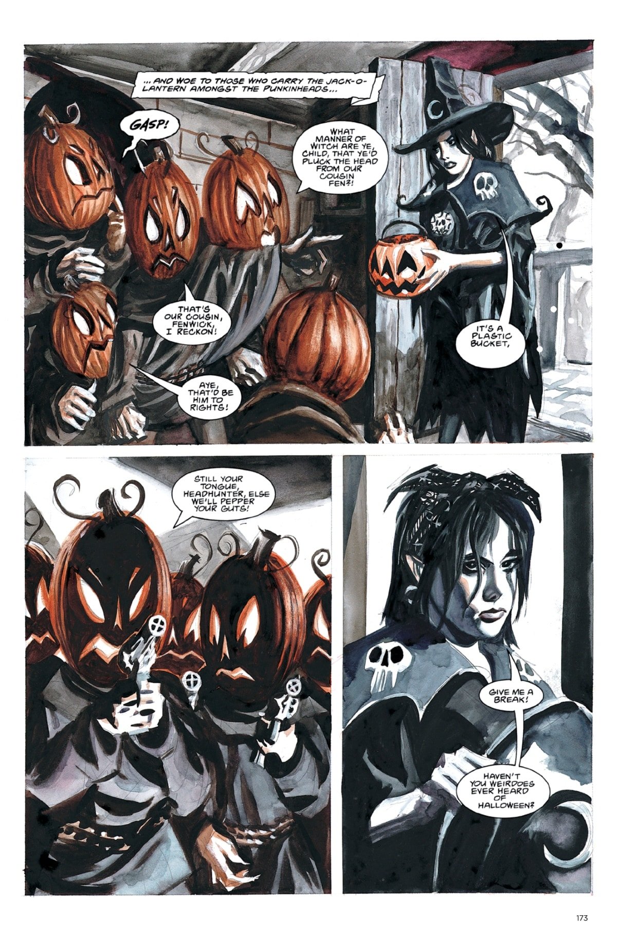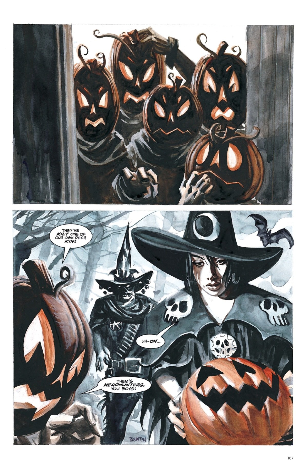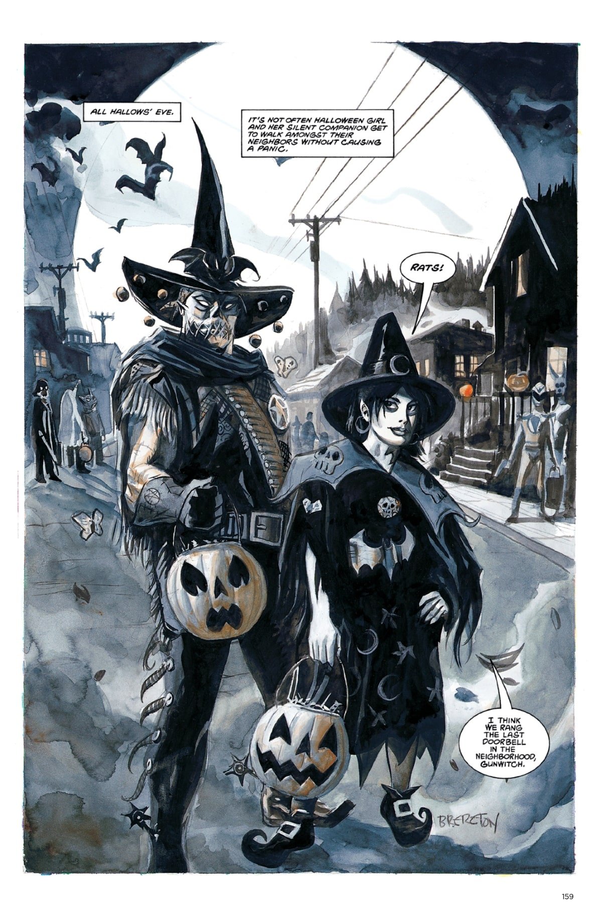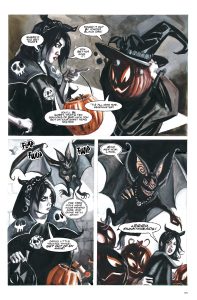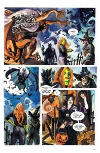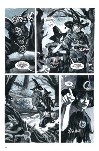 Happy Halloween! In honor of the creepiest holiday of the year, Dark Horse has provided The Beat with a horror comic to celebrate. Ripped from the pages of Dan Brereton’s Nocturnals Omnibus Edition, Vol. 1, we can exclusively share the entirety of “Punkinheads,” which follows Halloween Girl and her guardian, the Gunwitch, on a quest for the farthest trick-or-treat outpost.