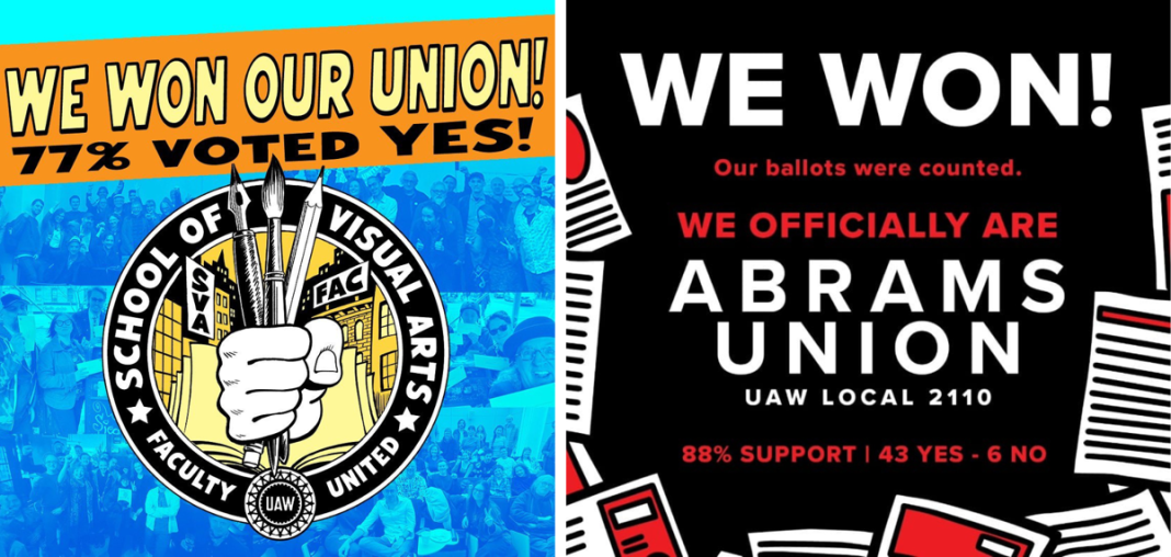 The resulting union will organize under UAW (United Auto Workers.) Hyperallergic has more on the effort.