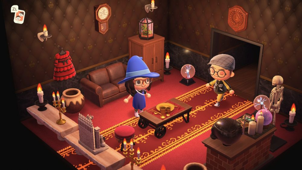 Upstairs, Ron has a room that includes both an area for food preparation and a dining area. The setup includes several items from one of the most popular types of furniture in New Horizons, the Ironwood set. Ron told me that early in the game, he and many of his friends put plenty of time and effort into gathering the necessary materials for crafting the Ironwood Kitchenette and Cupboard.