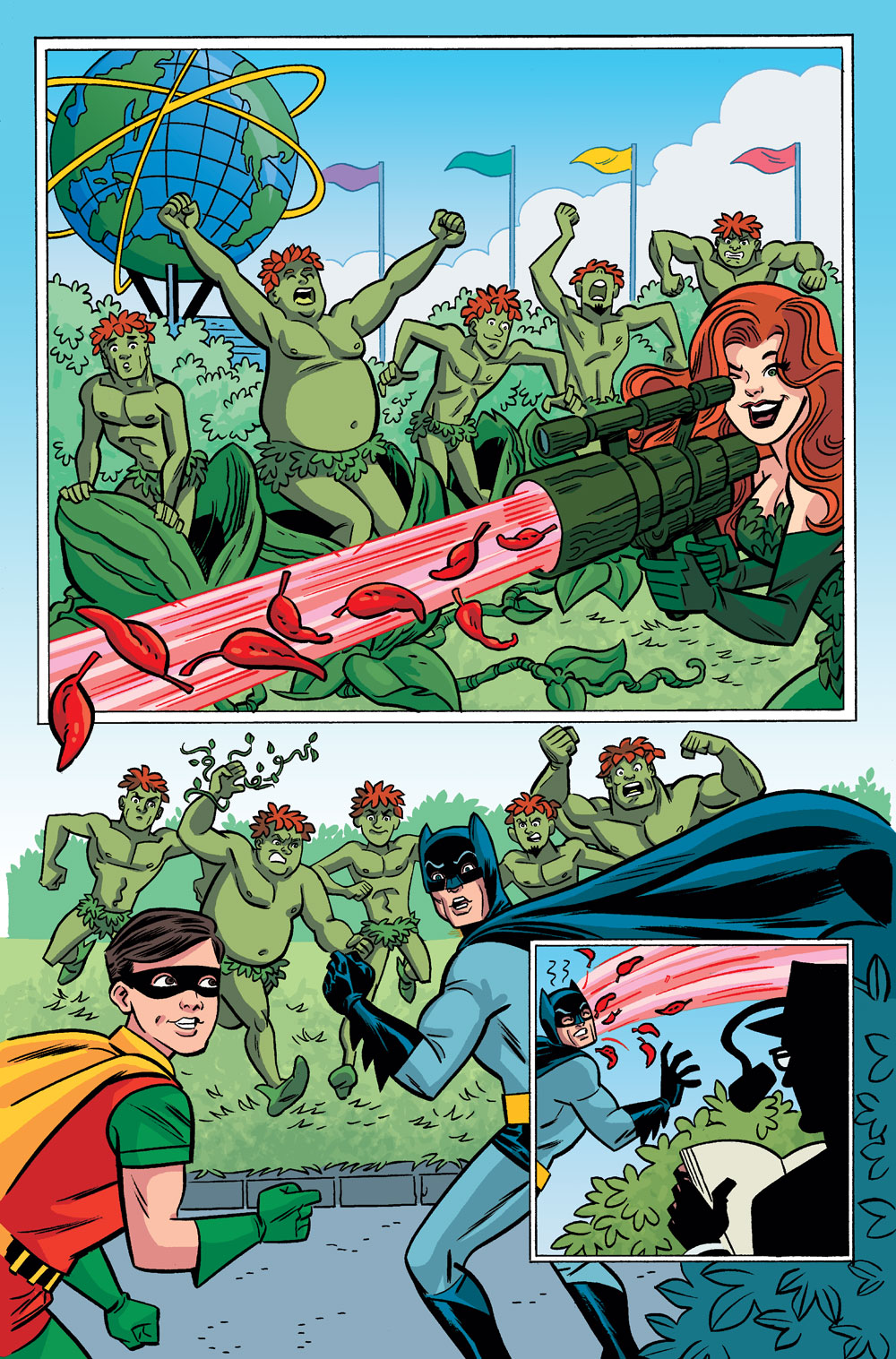 Batman’s logo is wrong (no yellow oval). I hope this is a one time error – after all the logo is correct on the covers – and not another case of an artist taking liberties with an established character in order to make his preferred version. Artists taking liberties with established characters is often a deal-breaker for me.