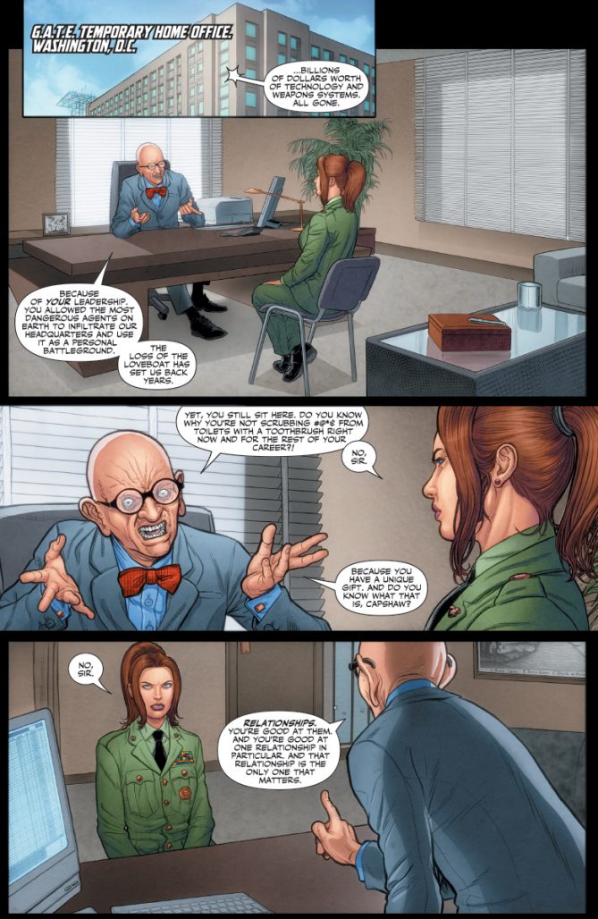 Shipping towards the end of September, X-O Manowar #19 starts the “Agent” story arc, where Aric takes charge of a G.A.T.E. unit to deal with an alien incursion…. one that might look familiar to readers of Eternity?