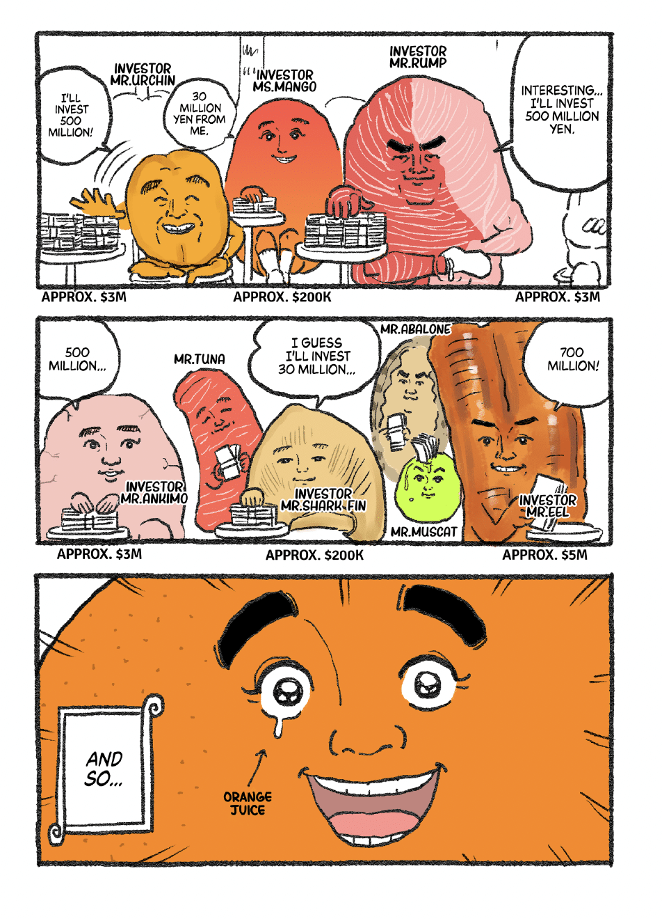 You can read the entire 12-page “Let’s Go Mr. Orange” manga in English too.