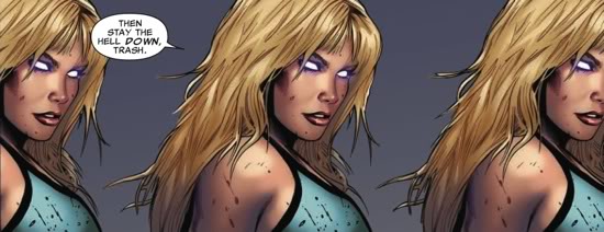 This may well be a phenomenon we’ll be seeing more and more often now, as artists are asked to turn around issues in a shorter amount of time, for a more intense amount of time, to catch up with double shipping. Artists like Rafa Sandoval or Greg Land, for example, are both known for replicating images like facial expressions and body language whenever a story requires. In the scene below, Land was asked in the script to draw triplets, so he simply replicates one image three times in order to get the affect. Whereas previously mainsteam artists had time to work on their comics, now there is increasing pressure to get something out in a shorter period of time, and it’s starting to show.