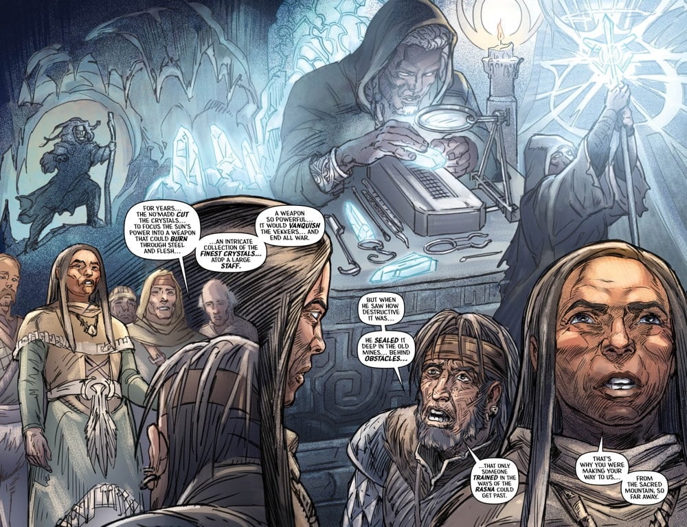 AARON: It’s been a hands-on collaboration between the three of us, and I feel confident in saying this is the strongest comic book story I’ve worked on to date. I drew the first concept sketches of the central protagonists of THE YOUNG NO’MADDS back in late 2021 and I’m finishing the art for the 4th issue almost 3 years later! This is definitely the most hours I’ve clocked in drawing and developing characters within complex world-building and it has been a challenging and rewarding experience. Then the project leveled up significantly in 2023 when color artist Jeremy Colwell became involved thanks to our powerhouse editor, Justin Zimmerman.