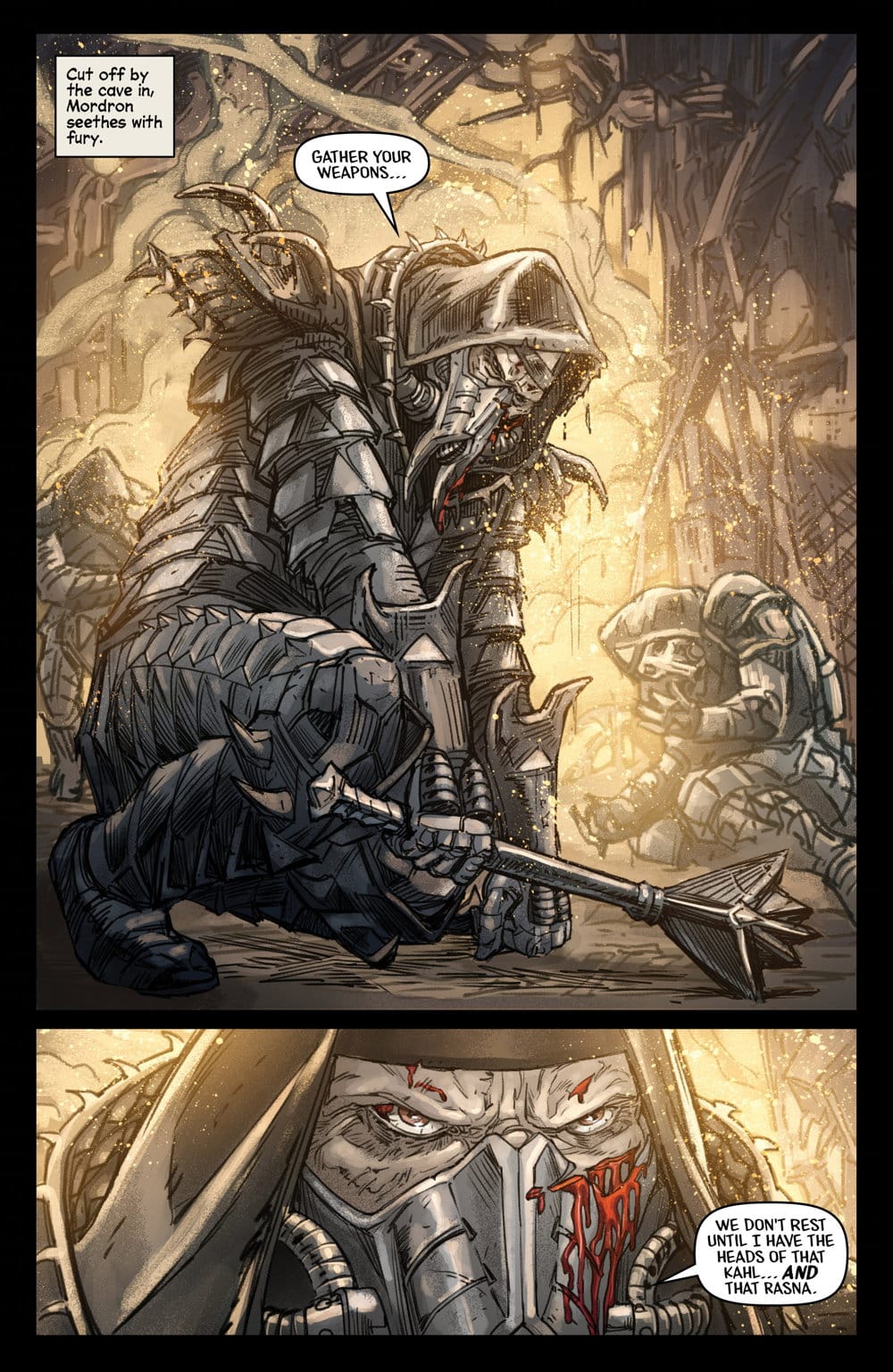 AARON: Jeremy colors the pages with an emphasis on storytelling above all else and he’s able to use color in a visceral way. The characters’ emotions are conveyed through his choices. Enthusiasm, apprehension, grief, fear… I can picture the palettes he used for each of those chapters and character moments in the story. Jeremy prides himself in bringing the best out of the artists he works with and I feel like I’ve won the lottery having him on this book.