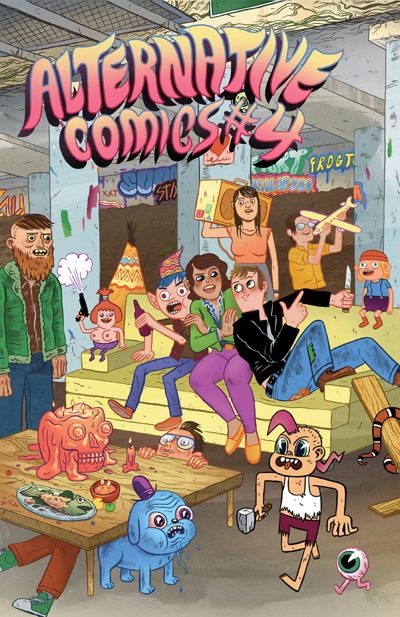 The popular anthology Alternative Comics # is back with issue 4. Cover art by Mike Bertino (Trigger). Comics by Theo Ellsworth (The Understanding Monster) & Craig Thompson (Blankets, Habibi), Sam Alden (Eighth Grade), James Kochalka (SuperF*ckers), Sam Henderson (Magic Whistle), Noah Van Sciver (The Hypo), Grant Snider (Incidental Comics), Alex Schubert (Blobby Boys), Andy Ristaino (Adventure Time), and Allison Cole (Never Ending Summer). The popular Inkstuds podcast launches a regular feature in the magazine with an interview with and comics by David Lasky. Alternative Comics #4 will debut at the Toronto Comics Arts Festival.