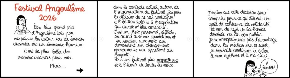 “I hope that this decision will be understood for what it is: a gesture of conscience and solidarity, not a rejection of comics or their audience.