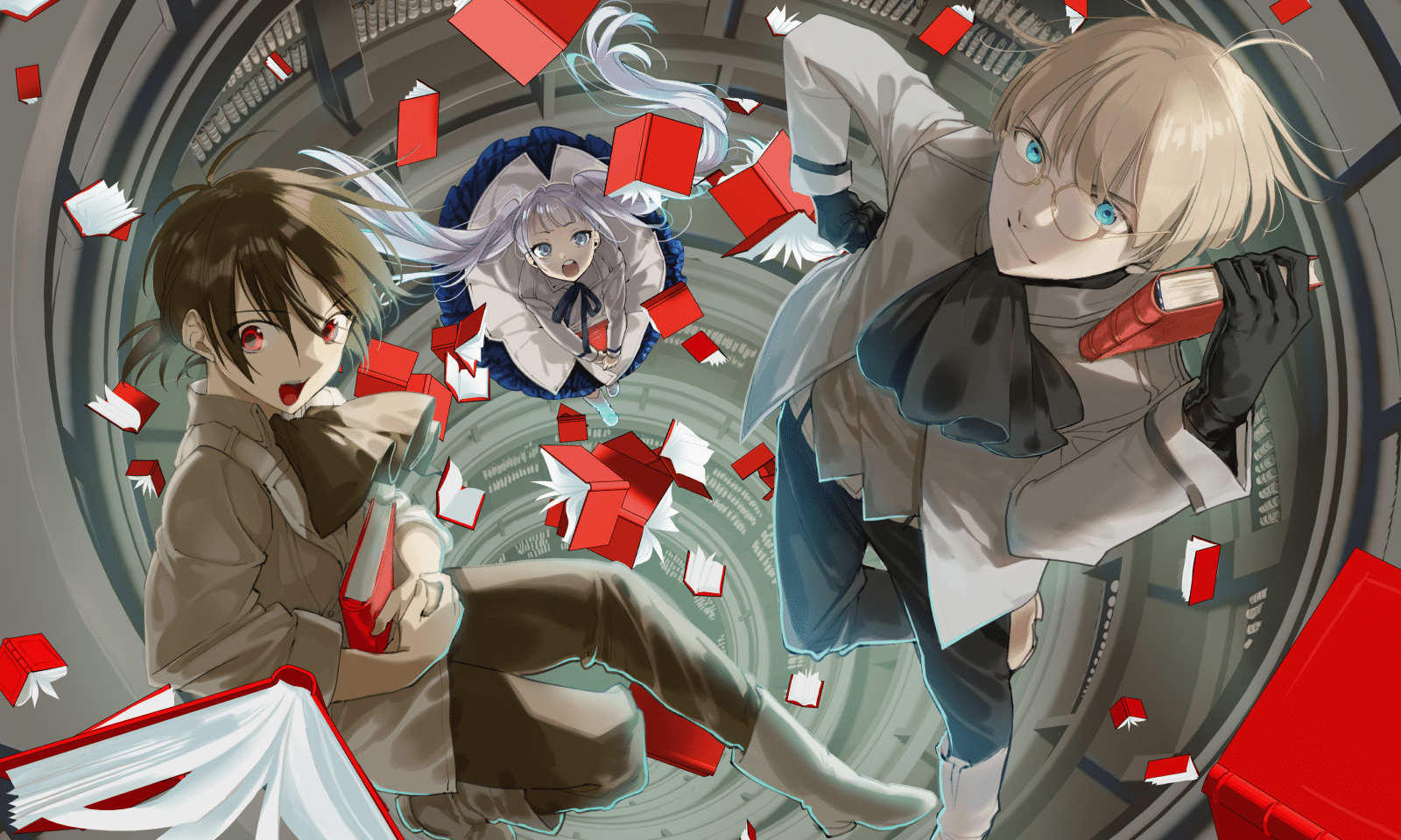 In the world of The Spellbook Library, spellbook librarians protect townsfolk from dangerous spellbeasts, sealing them in spellbooks that hold more than just magic. When he was a child, troublemaker Yan was attacked by a ferocious spellbeast—until he was rescued by a group of spellbook librarians. Inspired by the librarians’ heroic efforts, Yan vows to turn over a new leaf and become a spellbook librarian to repay their kindness. On the day of his employment exam, he meets Tohru, a mysterious young boy who has his own reasons for wanting to work at the library. Together, Yan and Tohru set off and join the ranks of The Spellbook Library, and begin the long journey to learn just what it takes to become a spellbook librarian!
