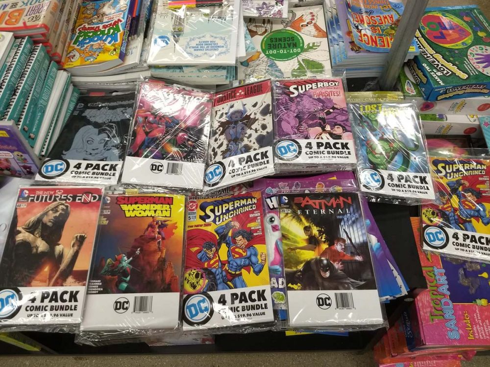 Comics aren’t just for Walmart anymore, it seems. My spies found a new non-direct market outlet for comics in suburban Chicago. It seems the Five Below discount chain is selling comic packs for $5. And where most people are used to seeing three comics in a comic pack, these are labelled “4 Pack Comic Bundle,” so take that pushers of chintzy 3-packs!
