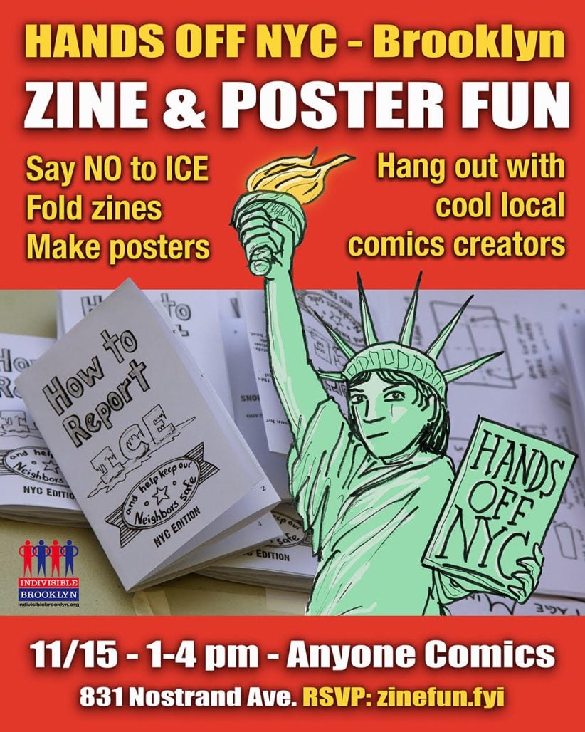 Join New York comic creators to fold zines and make posters to push back against ICE in our city! Stay to fold and color a while or just swing by to pick up zines and posters to distribute in your neighborhood!