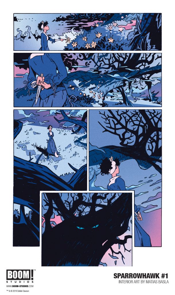 BOOM! Studios today unveiled a first look at SPARROWHAWK #1, the hotly-anticipated new five-issue limited series from acclaimed writer Delilah S. Dawson (Ladycastle, Star Wars: Forces of Destiny) and rising star artist Matias Basla (The Claw and Fang) debuting in stores on October 3rd.