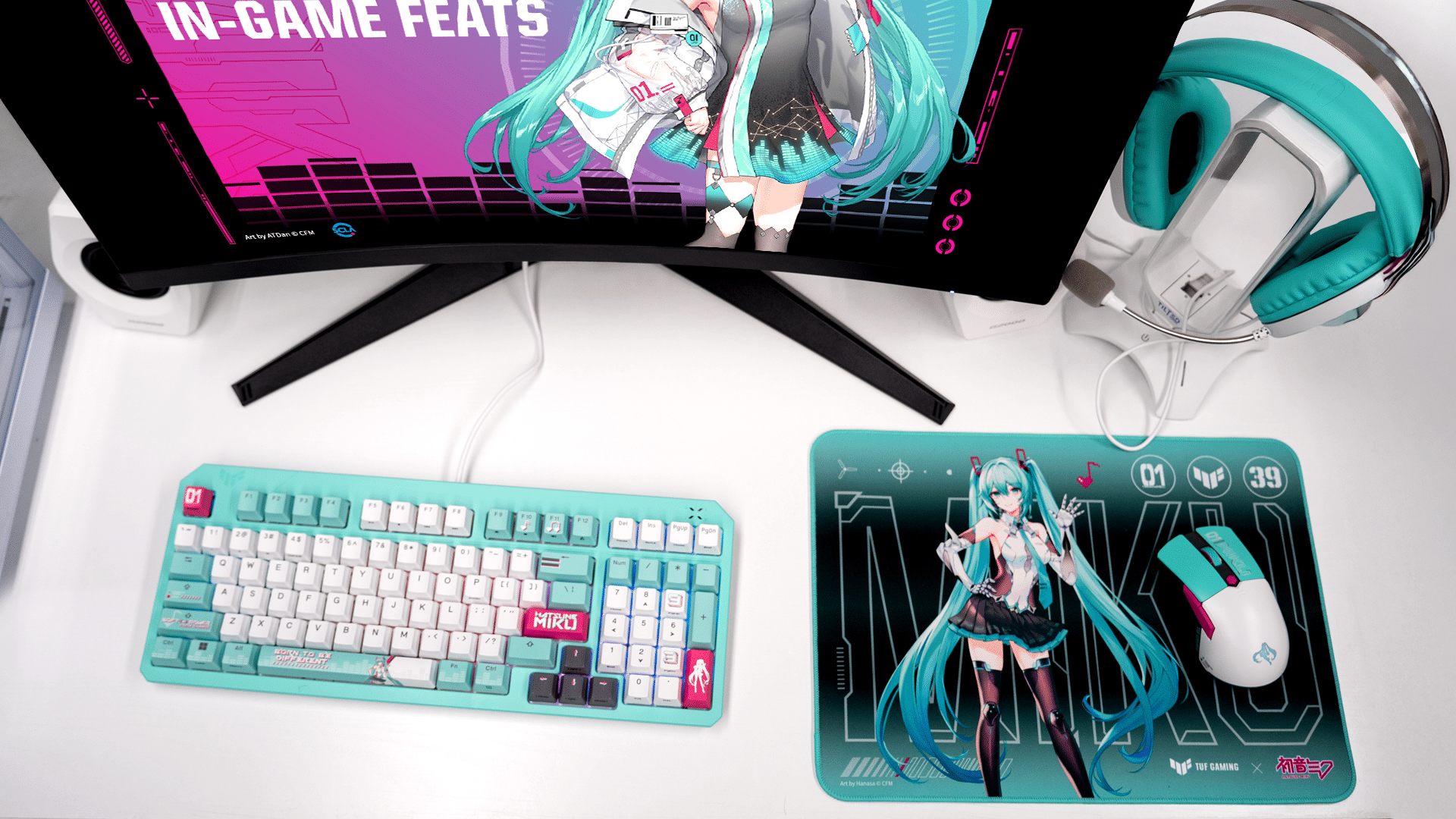 The collection infuses ASUS’s battle-hardened TUF Gaming gear with the signature white, turquoise, and pink aesthetic of the world’s most iconic virtual pop star. The lineup includes: