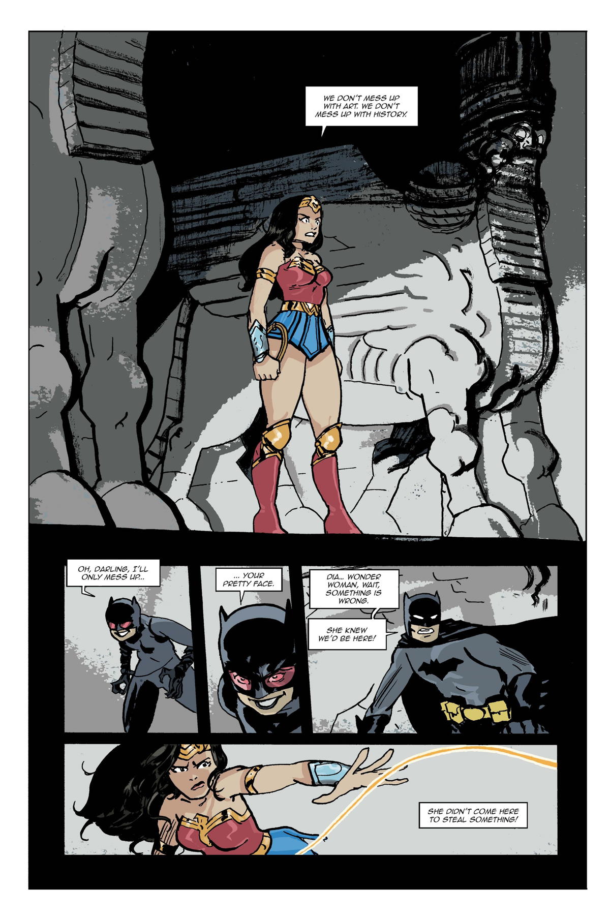 And here are 13 covers and some interior art — if you’ve ever wanted to see Batman brooding at various world culture sites, this is your time. Some real beauties here!