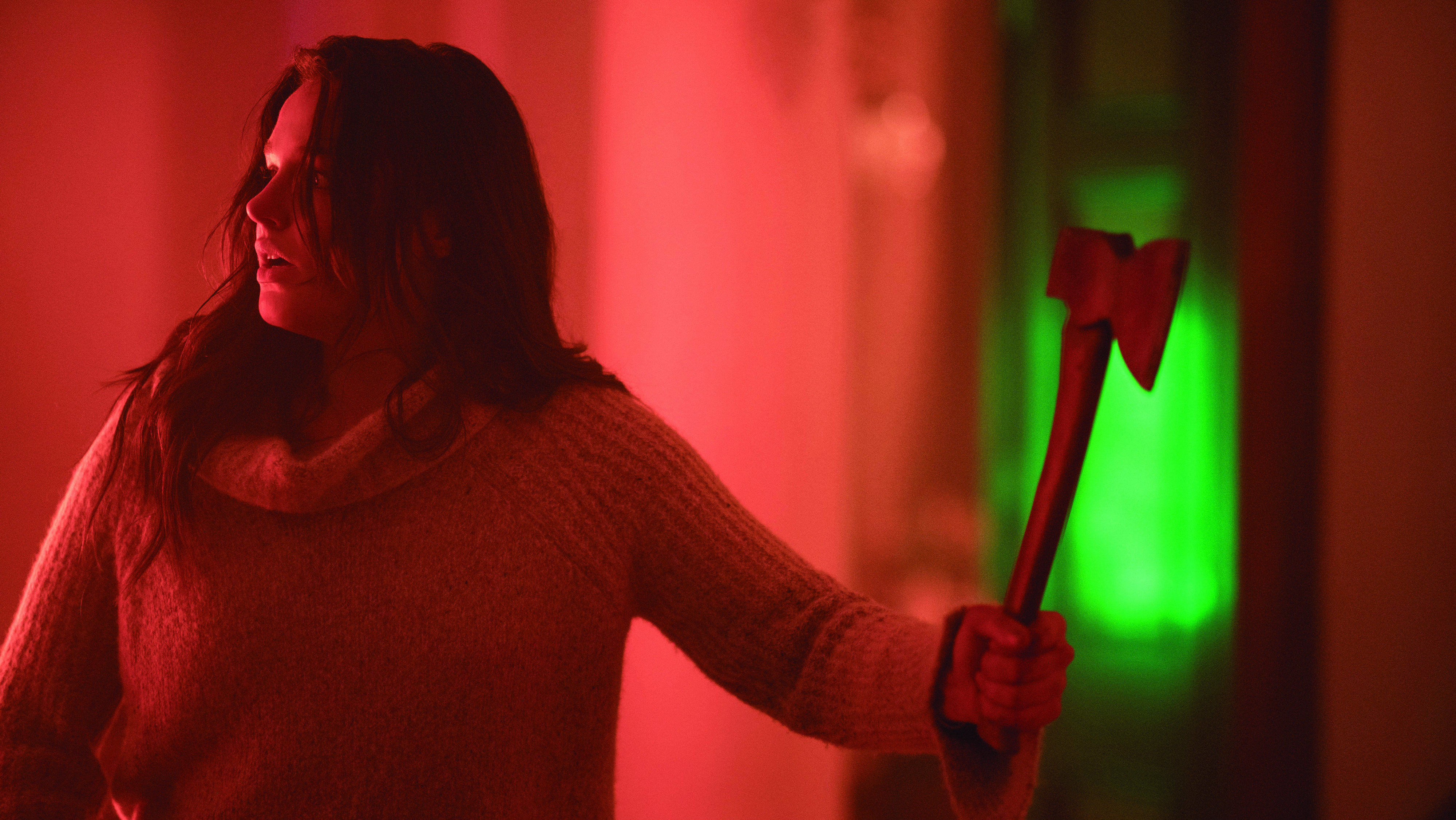 To insure you realize the film’s source material, the intro shows a sorority sister at the esteemed formerly-all-male Hawthorne University being stabbed with an icicle, a holiday gimmick taken directly from the original film. This is unbeknownst to her sorority sisters, some going home and others staying behind for the annual “orphans’ dinner.” One of the latter is Imogen Poots’ Riley, still getting over her sexual abuse by a fratboy three years earlier. On Christmas Eve, she and her friends decide to perform a Christmas ditty at the frathouse where said abuse took place calling out her assailant’s behavior. Soon after, Riley and her friends start receiving threatening texts, seemingly from the long-dead university founder, and some start vanishing. Of course, they think the humiliated frathouse is responsible, seeking revenge.