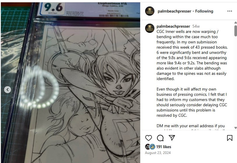 While this is a problem specific to this collector, Automatic Comics mentions in his video that a similar issue was previously reported in a Reddit post titled “CGC Slab Bow?”