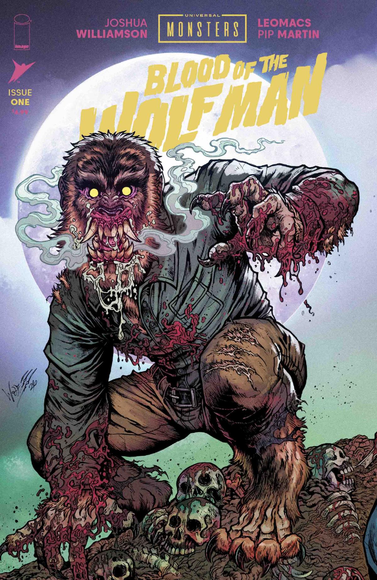 Leomacs adds, “Universal Monsters films have always captured my imagination, as there’s so much humanity in these characters. They are all incredibly iconic because they are both tragically human and terrifying like a wild nightmare at the same time. The Wolf Man has also always been a favorite of mine, so it’s a dream to draw this amazing character in a brand-new story and setting, penned by the amazing Joshua Williamson. Together we explore the Wolf Man’s bloodlust and the inevitable consequences.”