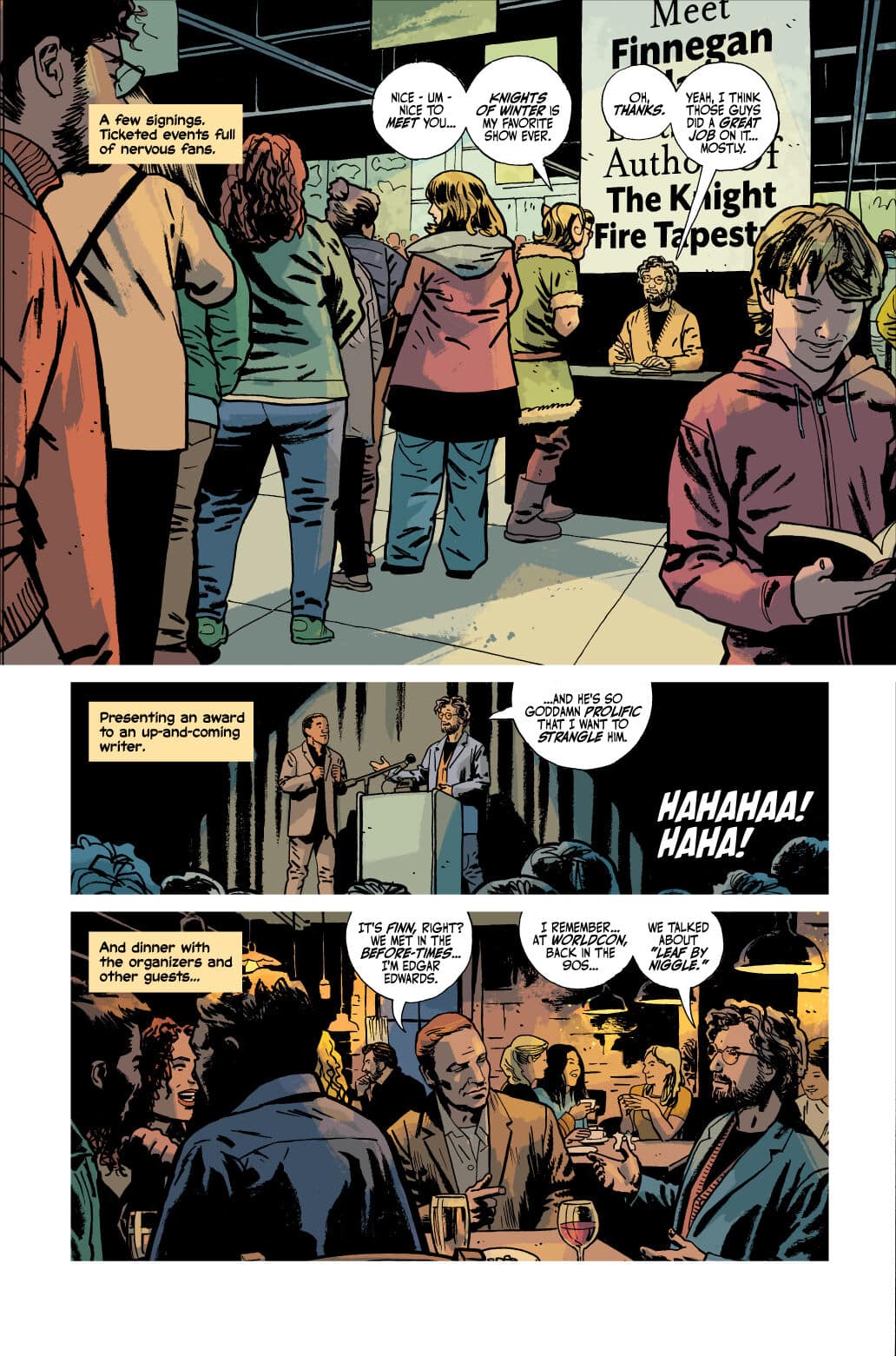 Image Comics has announced Unfinished Tales, a new graphic novel by Ed Brubaker and Sean Phillips, due out this fall. A thriller set in the world of publishing, the book follows Finnegan Blake, a successful fantasy author who’s been struggling to finish the series that made him famous for over a decade. That’s when “an old friend shows up with the perfect solution to his writer’s block. But as their secret pact turns dark and these writers’ egos clash, Finn will see how far he’s willing to go to get this final book onto the bestseller list. Most writers would kill for Finn’s life… will he?”