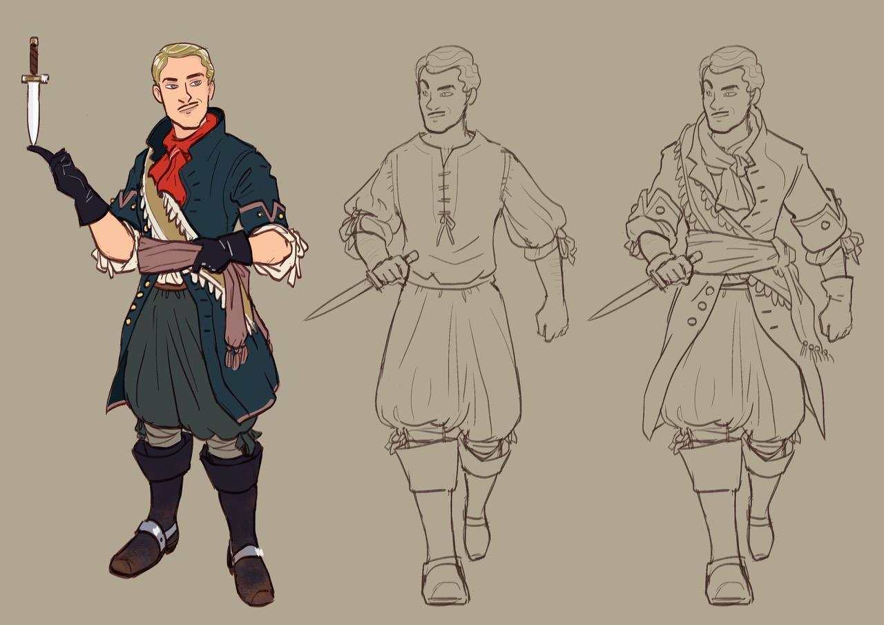 Originally, we wanted to base Flemming’s look on contemporary actors such as Owen Wilson and Brad Pitt. To our own surprise, the final design ended up looking more like the old Hollywood legend Errol Flynn.