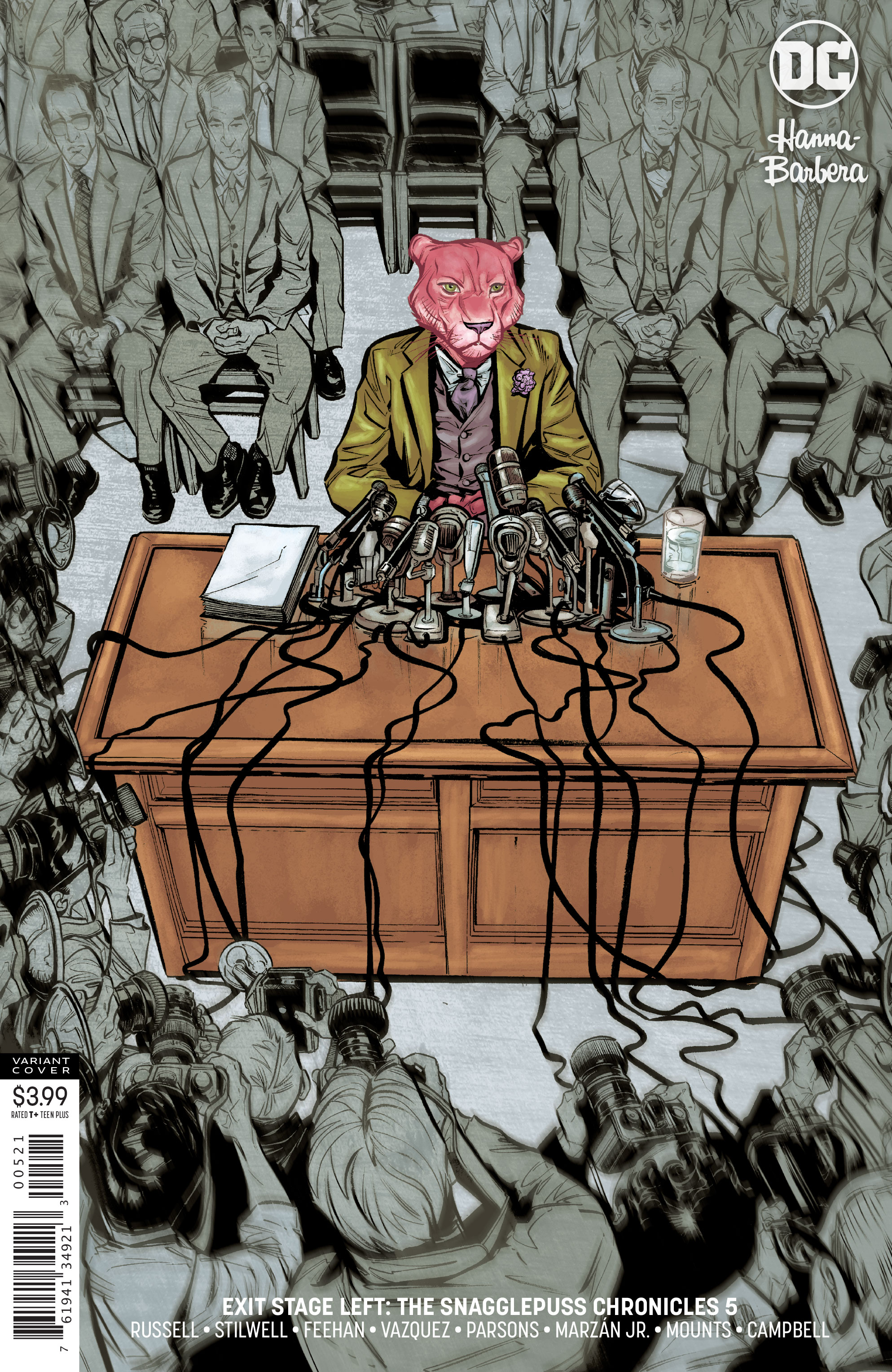 Joëlle Jones’ cover is my favorite of the bunch. Coloring the surrounding characters in gray does a perfect job of placing the focus on Snagglepuss, and the centered composition looks very album cover-esque.