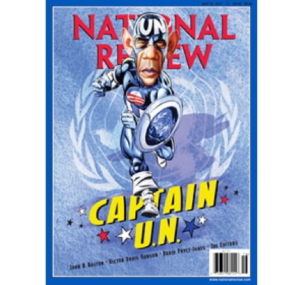 This week’s National Review has a cover of Obama as Captain America by Roman Genn. Sadly, a larger image isn’t available to us non-subscribers. It isn’t as funny as the KICK-ASS cover from last year, but it is funny.