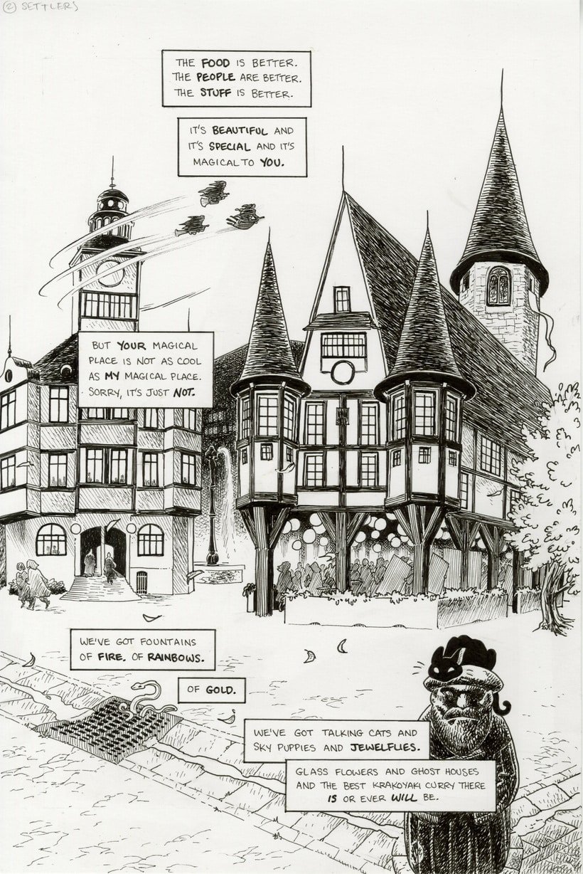Maybe Finder was TOO immersive; McNeil has been on a burn-out induced break from turning out any sizable work for years…but that ends this weekend at SPX, the Small Press Expo, when they debut Settlers of the Storm Worlds. As McNeil posted on BlueSky: