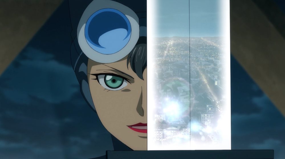 Catwoman adds a sword – courtesy of Cheshire – to her arsenal, and the felonious feline takes a liking to the lengthy, thick blade. Here, the viewer gets a nice vision of the city as reflected off the sword. Elizabeth Gillies (Dynasty, Sex & Drugs & Rock & Roll, Vacation) is the voice of Catwoman.