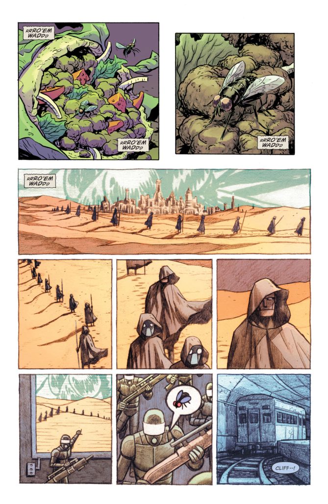 All topped off with Todd Klein’s perfect adaptation for those same stylistic changes and a number of uniquely voiced characters, negatively spaced or weird aliens.