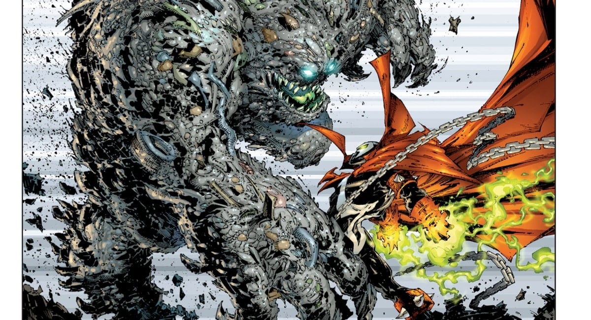 I’ve seen people say that Greg Capullo levelled up when he took on Batman with Scott Snyder. I can see why people would put that forth, with an adventurous, shifting layout, even turning the book around in one issue, but I think it comes down to whether or not you like clean lines. Jonathan Glapion’s inks, I would argue, are part of what makes that look. On Spawn, I’d say the adventurous layouts and impressive character designs were always there, there’s just a busier, frenetic style more in line with McFarlane’s own style (which also makes sense given that he’s one of the primary inkers here) along with Danny Miki and Chance Wolf, both maintaining that style. It fits with the dirty, chaotic atmosphere of the story and helps make the Heap look like a…well, living pile of refuse, debris, and detritus that he is.