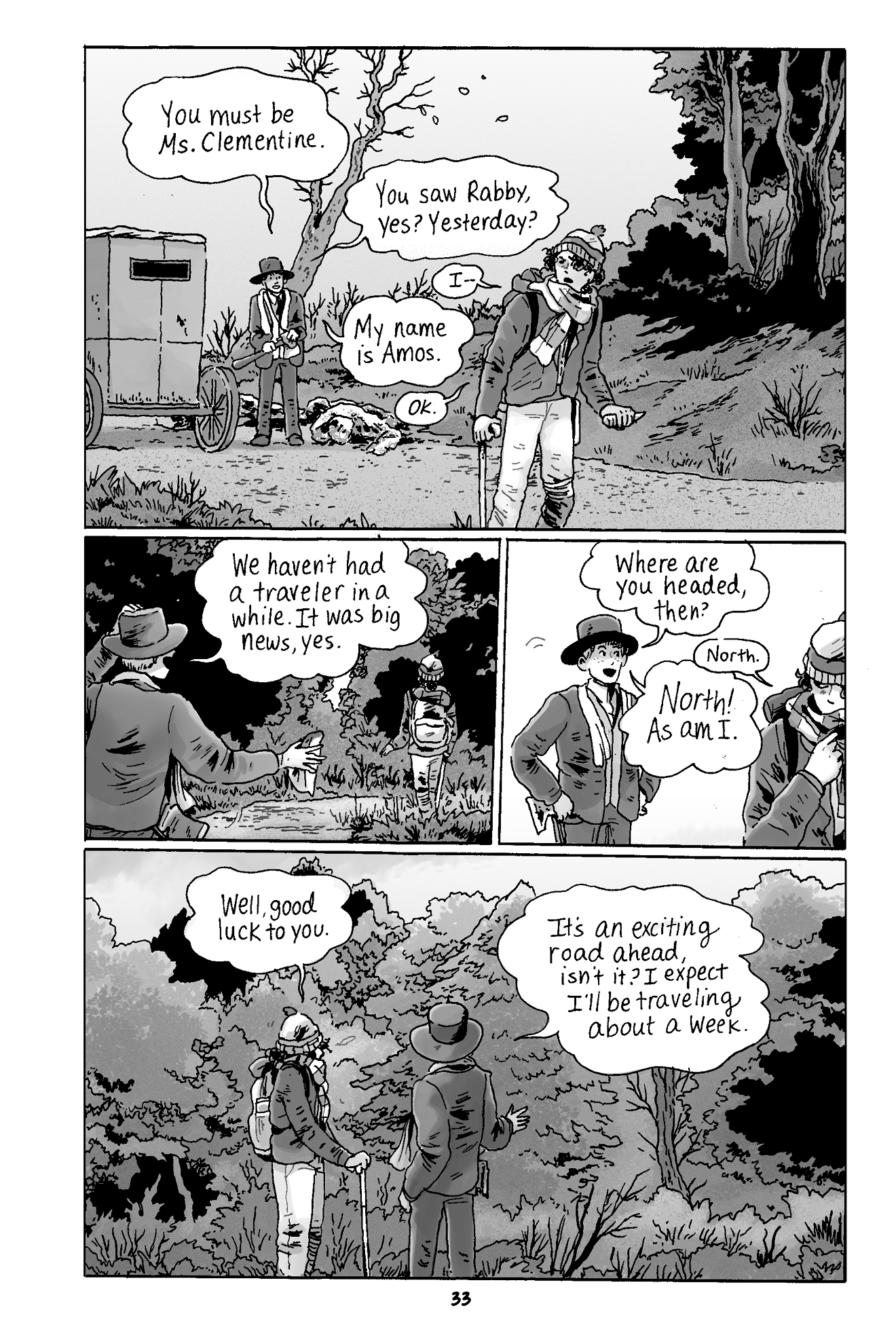 Perhaps the first thing that struck me about Clementine: Book One was all the ways it felt different from Walden’s past work. Obviously, this book is about zombies, but past that, Walden’s two most recent graphic novels use ethereal backgrounds and sort of haunting architectural styles to create original aesthetics that feel wholly new. From Clementine’s first page, this story is far more grounded in reality, coming across as almost rustic.