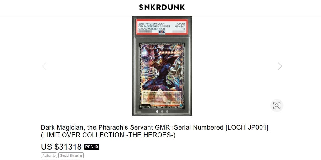 A Malaysian Yu-Gi-Oh! card collector was devastated after cutting the top corner of his highly sought Grand Master Rare version of Dark Magician, the Pharaoh’s Servant. Snkrdunk values a PSA 10 at $31,318. There is already an eBay listing for the raw card for $15K.