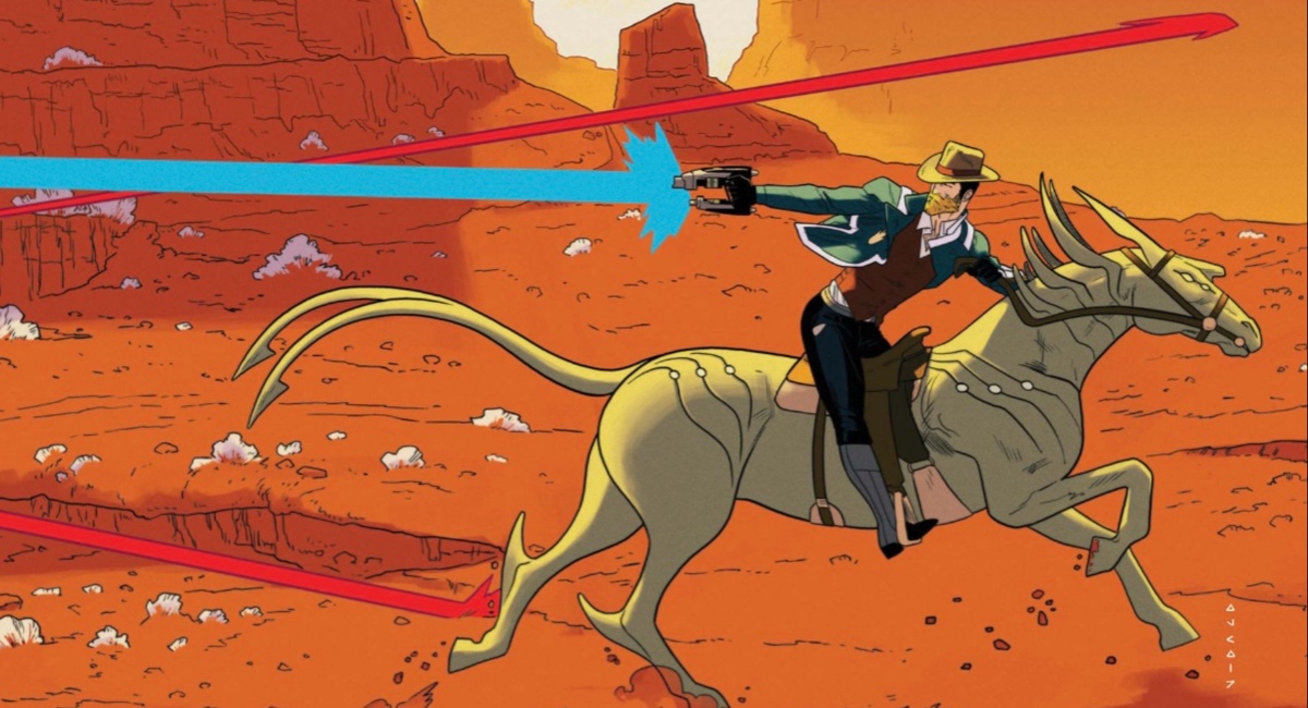 In the six-issue run of Star-Lord, written by Chip Zdarsky, with art by Kris Anka, colors by Matthew Wilson, and letters by Petit, Peter Quill is stuck on a dumpy backwater planet where prejudice still runs wild, and there’s nothing to do but watch TV and have a couple of brews. Did you guess the name of the planet? It’s Earth! In the wake of the implosion of both their ship and team, the Guardians are scattered to the winds, and Peter ends up befriending one of the locals and getting a gig as a bartender at the fabled Bar with No Name.