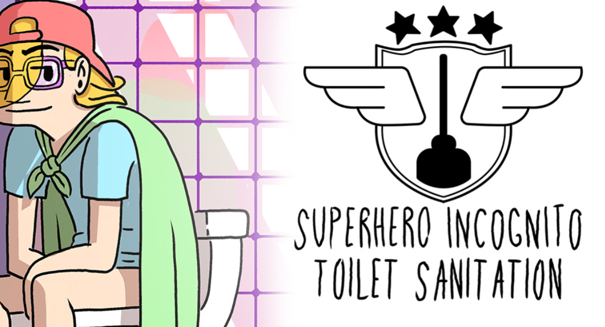 A 52-page parody one-shot about the team that cleans up after superheroes — keeping hero restrooms clean, one flush at a time.