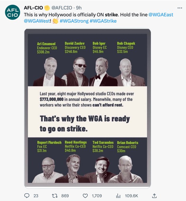 1) Something (very stupid) you’re going to see over the next weeks are people arguing that screenwriters are being unreasonable. “Times have changed”. No. Times WERE changed. By SOMEBODY. By PEOPLE, making CHOICES.
