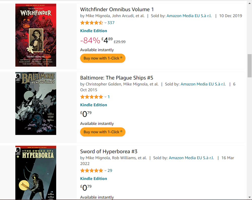 Sale prices on Amazon are also a problem. On my regional store, in UK, the sale prices often remained the same as regular non-sale prices or did not indicate that they were the ‘lowest price in 30 days’. As well as that, not all sales would appear in the sale section. Europe Comics, a favourite publisher of mine, holds frequent sales and price drops that never appear in the sale section but are applied to their books on the store. But you have to find them. I can’t easily search by publisher anymore, so I now have to go through the list on the Europe Comics website and search for each individual book by name and author. It remains frustrating and rather futile.