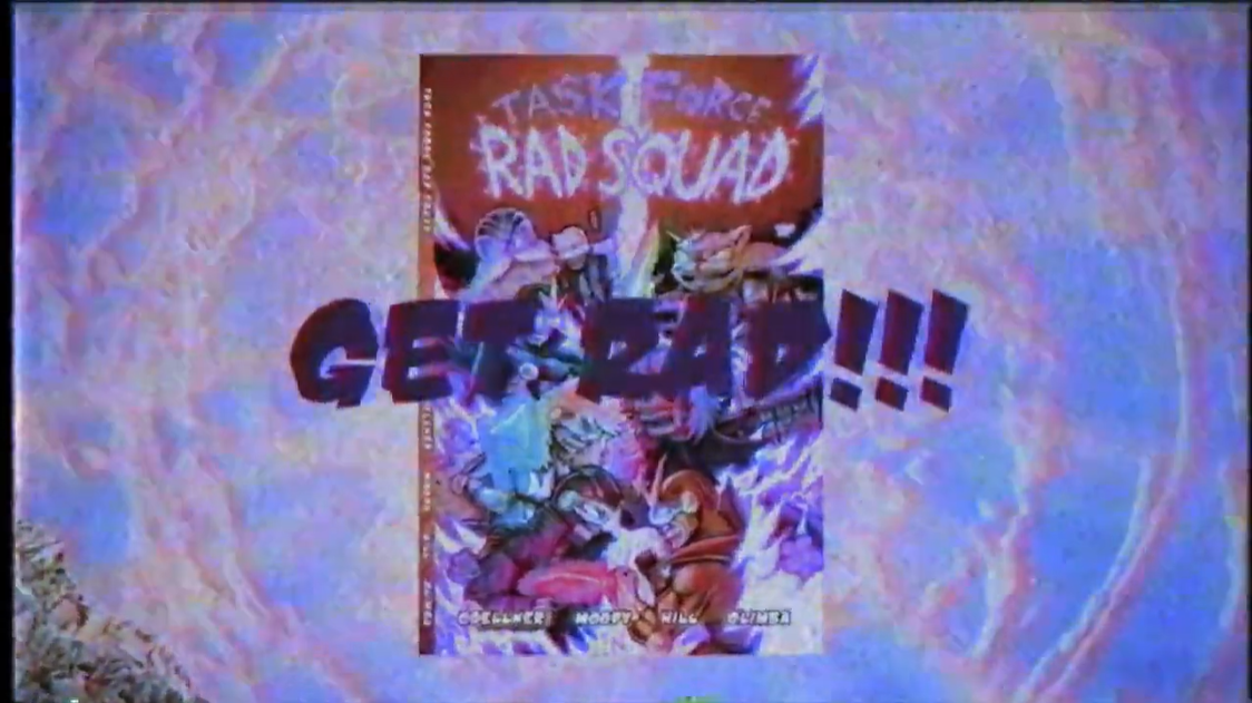 Task Force Rad Squad is a comic book series by Caleb Goellner and Buster Moody for fans of tokusatsu, sentai, kaiju, cats, sleeping, yelling, push-ups, talking birthday cakes, and space potion.