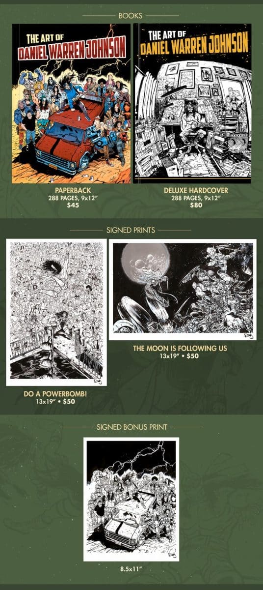 Flesk Publication and Daniel Warren Johnson have launched a crowdfunding campaign for The Art of Daniel Warren Johnson, an art book compiling illustrations, pages, and covers from the entire DWJ oeuvre: Space-Mullet, The Ghost Fleet, Extremity, Murder Falcon, Do A Powerbomb!, Transformers and The Moon Is Following Us, along with Wonder Woman: Dead Earth, and Beta Ray Bill.