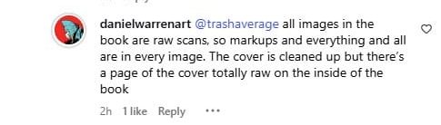 “All images in the book are raw scans, so markups and everything and all are in every image. The cover is cleaned up but there’s a page of the cover totally raw on the inside of the book” commented DWJ on the Instagram announcement.