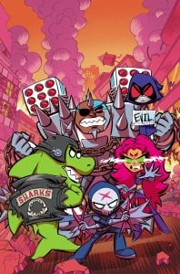 The Towers have lifted, and Earth’s evacuation is complete! As the Titans take to the stars to save humanity from the oncoming apocalypse, trouble can’t help but follow them! Our heroes are scattered across the galaxy— and across dimensions—each discovering that new worlds mean new dangers, something Starfire knows all too well as she ends up cornered by an Apokoliptian blockade!