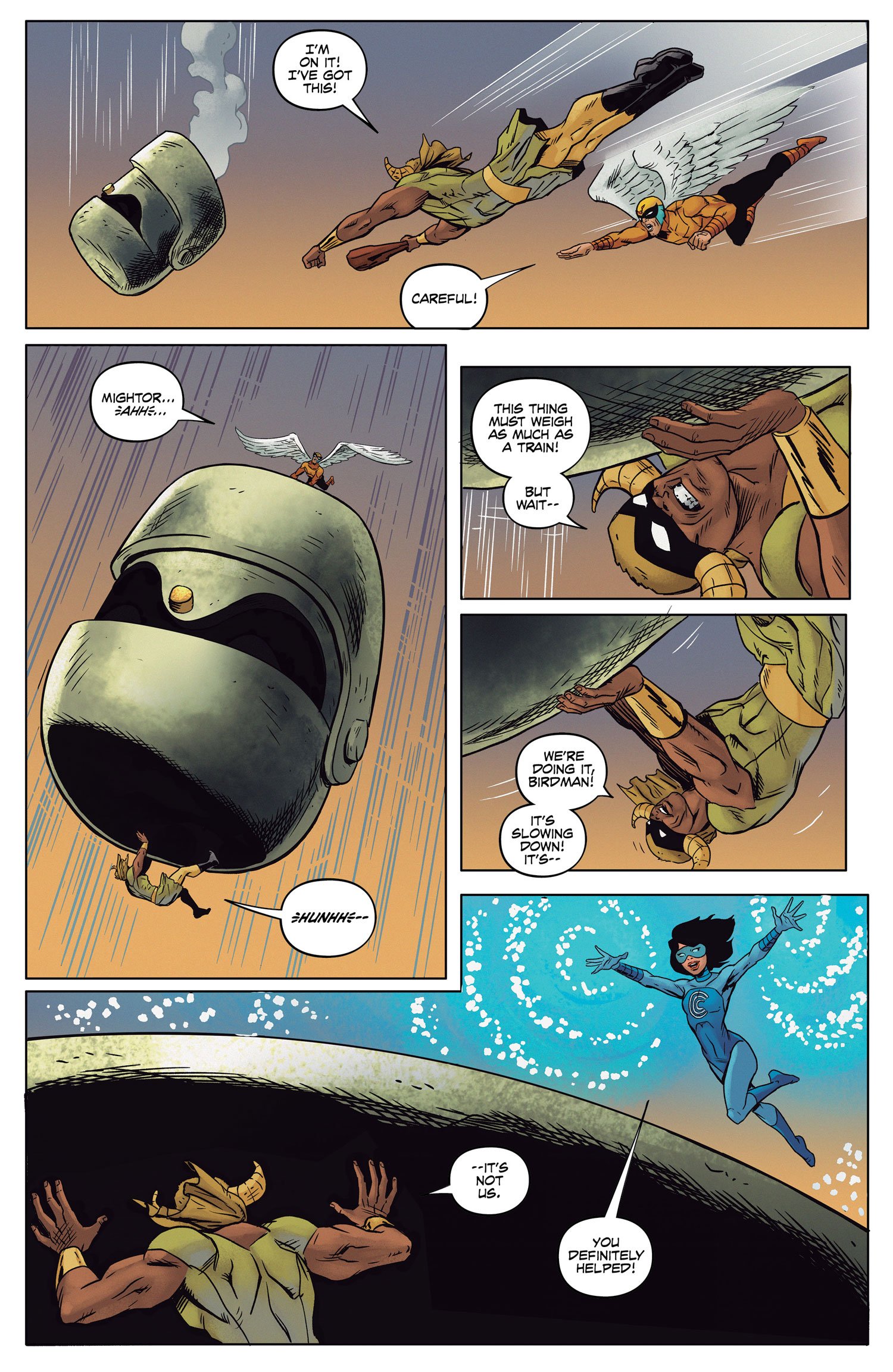 But Future Quest sort of thumbs its nose at that revisionism. Of all the takes within editor Marie Javins’ purview, this is the one that is the most true to form. When it was first announced, it was a dream come true scenario for my 11 year old self that loved Jonny Quest re-runs, and was an even bigger fan of Space Ghost and the Herculoids, and having grown up with Adult Swim’s play on these concepts (Space Ghost Coast to Coast, Harvey Birdman: Attorney at Law, The Venture Bros.), I was more than primed for a serious take on Hanna-Barbera’s action heroes all coming together to face a larger than life threat. The idea that Flash Gordon‘s Jeff Parker and Evan Shaner would take the reins, who keen-eyed Beat readers know I’m a *huge* fan of, was the perfect icing on the cake.
