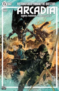 Finally, this week brings us the penultimate issue of Batman/Green Arrow/The Question: Arcadia, a Black Label title which throws the titular heroes into a snowy labor dispute, has them beat up a bunch of union busting bad guys, and all while debating their fundamental philosophical differences. If you want to call the first two issues heady — which I for one did — this issue is where it leads into the blockbuster action movie side of it all. I really like this book, and I suspect will like it all the more when I’m able to read it all at once in a collection, as has been the case for almost all of Black Label’s recent output for me. This issue is from writer/artist Gabriel Hardman, colorist Romulo Fajardo, Jr., and letterer Simon Bowland.