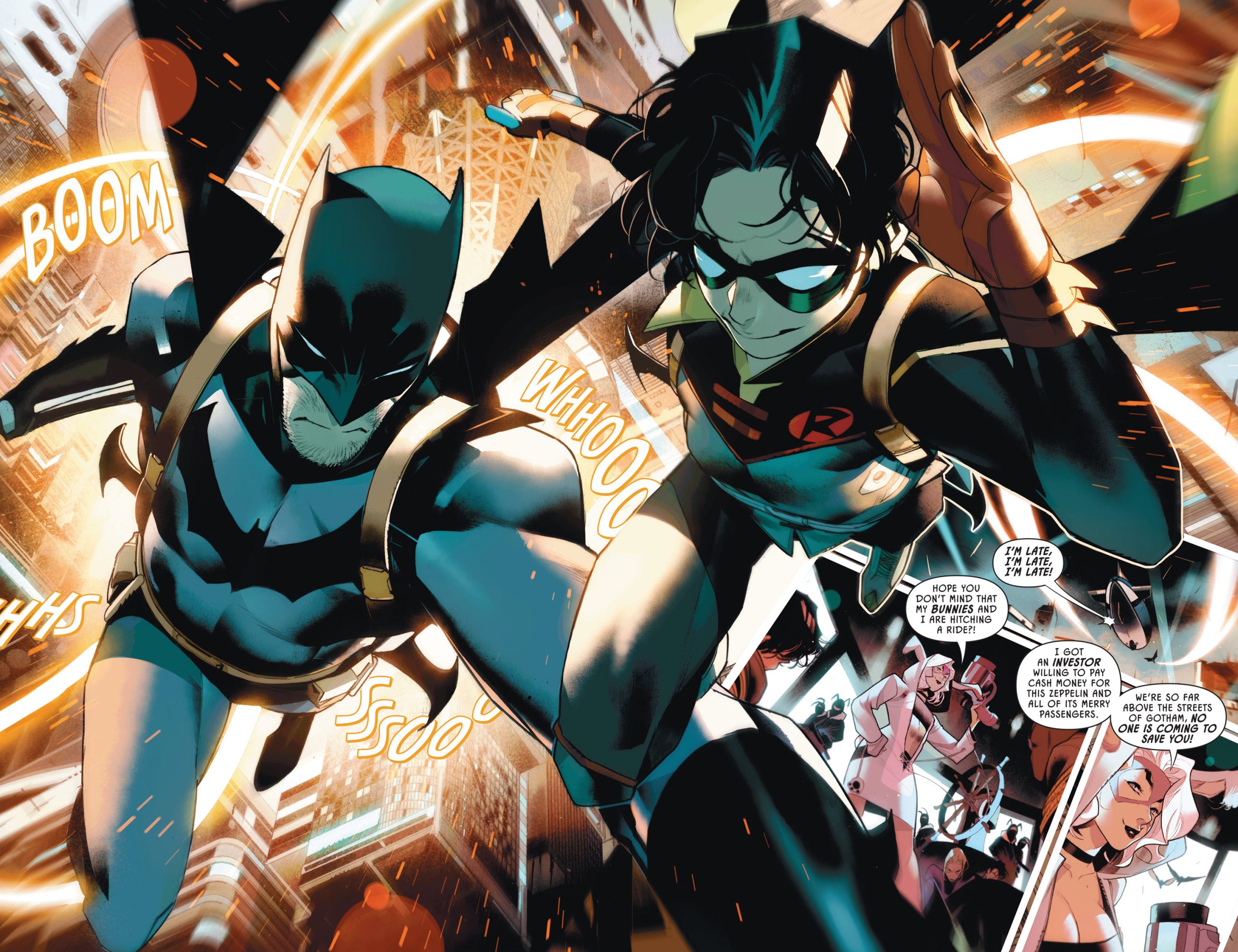 Batman and Robin is a continuation of Williamson’s work on both Damian Wayne’s Robin solo series and the aforementioned “Shadow War” storyline that spun out of it. The writer has a solid take on the evolution of the character, and the offbeat dynamic between him and Bruce is the strongest selling point of this debut issue. This is a Bruce who has a better handle on how to be a father than we’ve ever seen before, though it’s clear Damian’s not going to make anything easy on him.