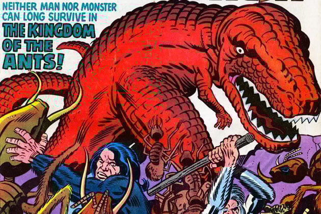 Last week some of our most elite staffers that contribute to The Beat found themselves in an impossible situation. When our entire team worked on apprehending Spider-Man rogue Mysterio, he suddenly opened a portal to a brand new comic book world — one very familiar to those who are acquainted to the work of Jack Kirby…that’s right…Dinosaur World. We were Eager to hunt down our lost friends and unite the entirety of Team Beat, the other group of us tracked down the Spider-Man villain and went after our friends! When we arrived, we greeted the missing staffers who were all dressed in caveman garb uttering something about the new friend dinosaur — just then the Devil Dinosaur reared his head above us and we panicked. How was the other group of Beat Staff supposed to assume that this dinosaur was friendly? After our dino-dispute concluded things worked out for the best — we slaughtered the local wildlife and had a Beat-approved dinner. Devil Dinosaur doesn’t read comics…so the Devil Dinosaur wasn’t able to contribute to the pull list this week, luckily our battered Beat members had a Diamond list handy. Here’s our staff picks for the week: