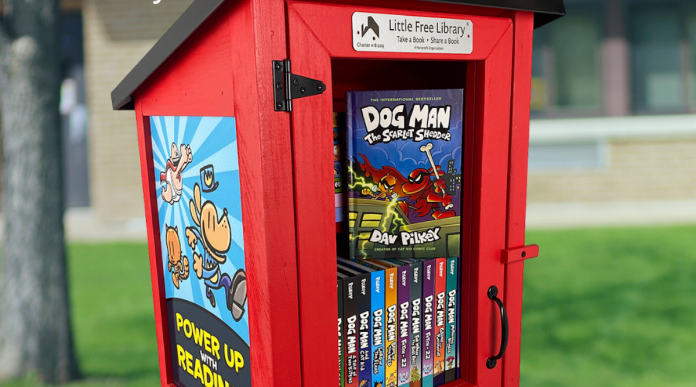 On Tuesday, March 12th, 2024, a press release from Scholastic announced that Dog Man-themed Little Free Libraries are coming to all 50 states. The libraries are sponsored by Scholastic and the Little Free Library‘s “Power Up with Reading” initiative.